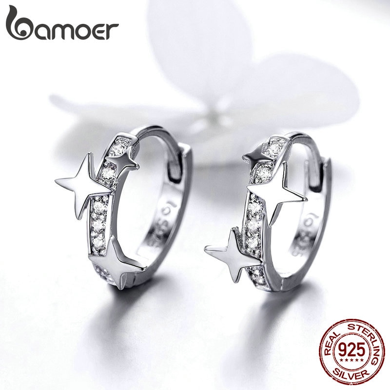 Bamoer ต่างหูห่วงเงินแท้ 925 รูปกาแล็กซี่ ป้องกันอาการแพ้ เครื่องประดับ สําหรับผู้หญิง