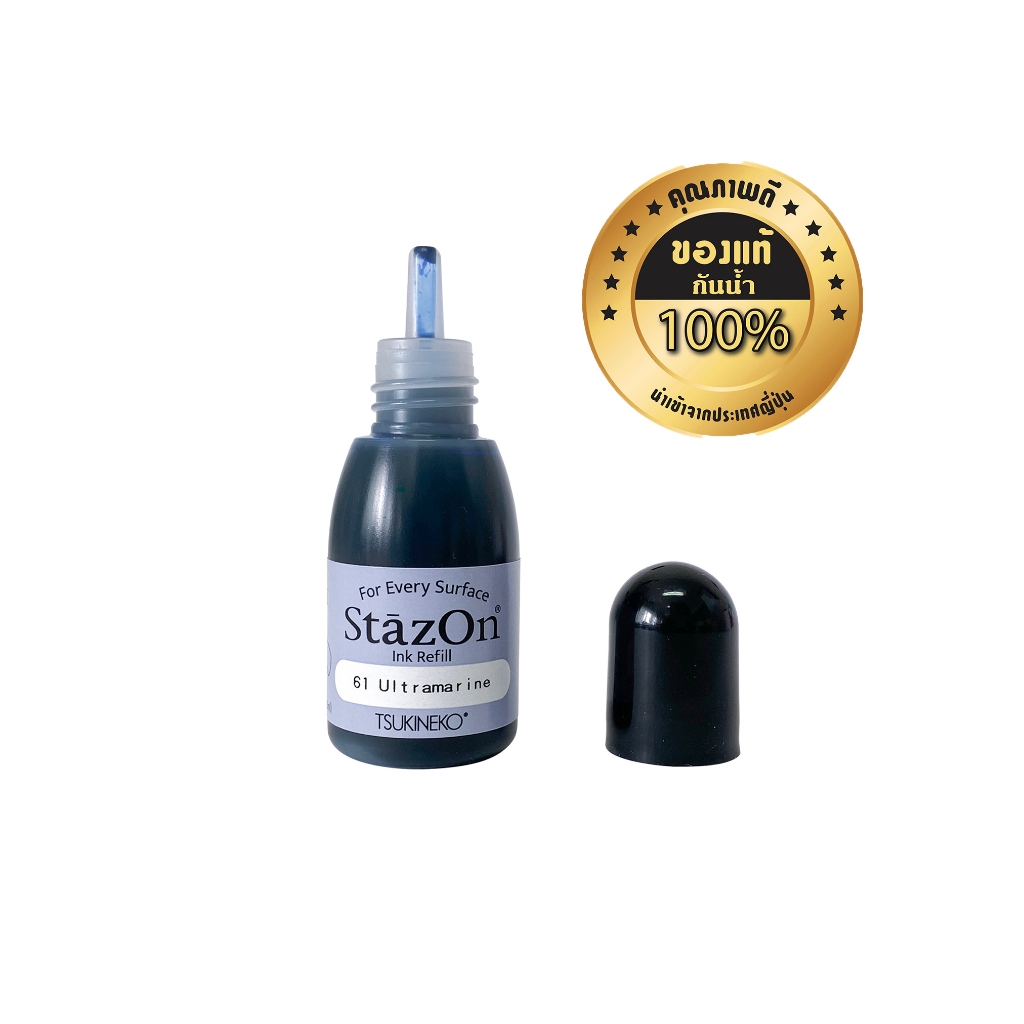 StazOn หมึกกันน้ำ สีน้ำเงิน Ultramarine ญี่ปุ่น หมึกเติมแท่น 15 มล.ประทับบนพลาสติก, อะคริลิค,แก้ว