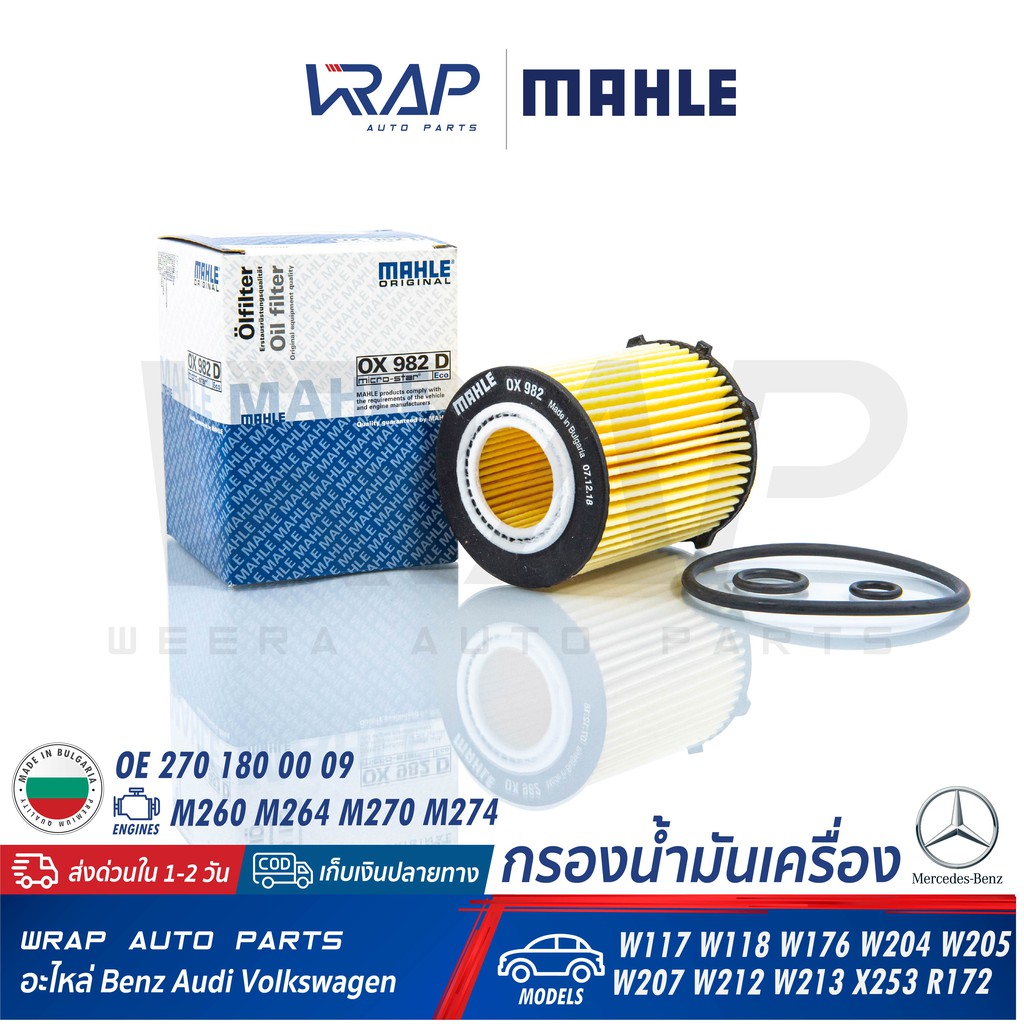 ⭐ BENZ ⭐ ไส้กรองน้ำมันเครื่อง MAHLE OX982D | เบนซ์ เครื่อง M260 M264 M270 M274 รุ่น W176 W177 W204 W213 W246 C117 C257