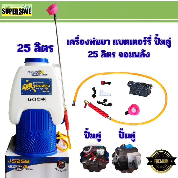 เครื่องพ่นยาแบตเตอรี่ 25 ลิตร ปั๊มแรง 15 บาร์เต็ม แบตใหญ่12v12ah พ่นได้ไกล สินค้าพร้อมส่ง