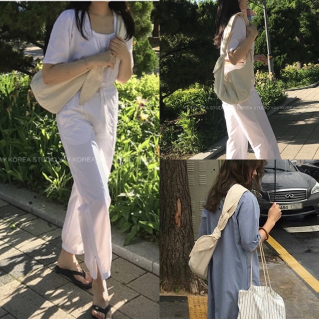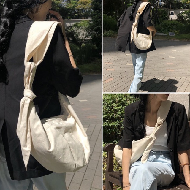 C011 กระเป๋าแนวเกาหลี ทรงเกี๊ยว ผ้าแคนวาสหนา งานดี ตัวถุงใหญ่นะคะ