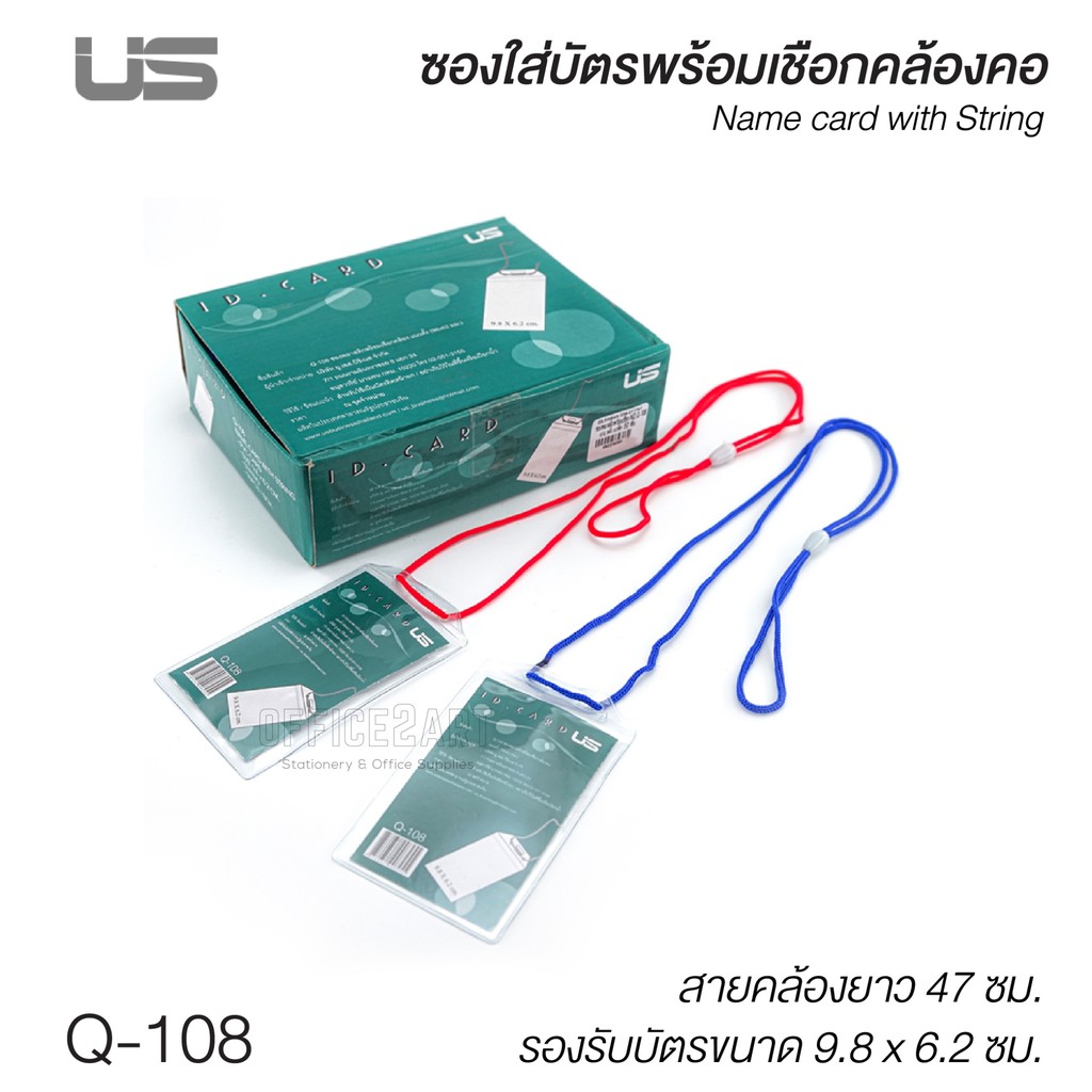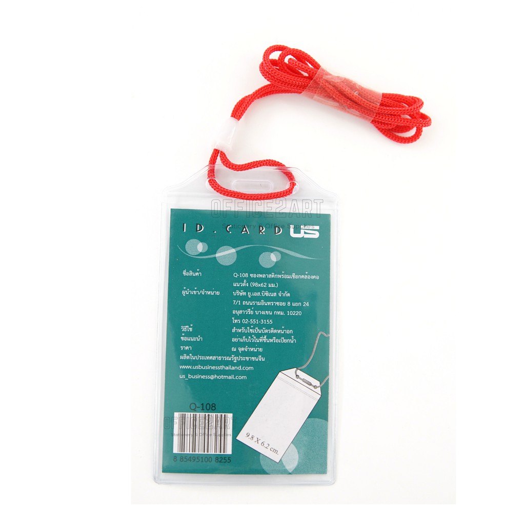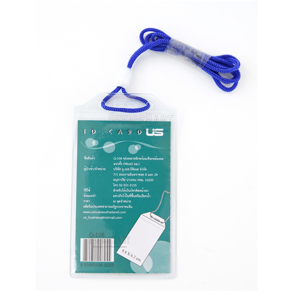 ป้ายชื่อ ป้ายพนักงาน ซองใส่บัตร ซองพลาสติก พร้อมเชือกคล้องคอ US Q108 แนวตั้ง , Q008 แนวนอน (กล่อง 50 ชุด) [S24]