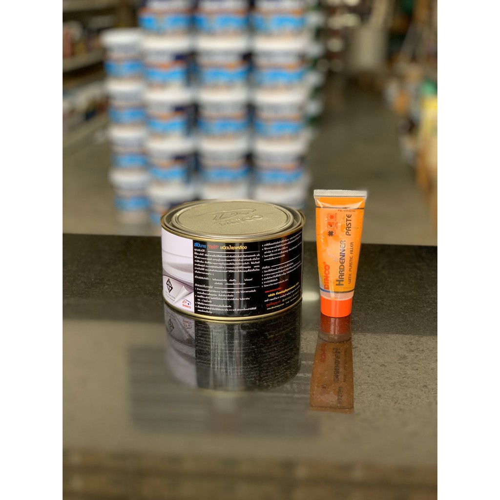 โป้วเหลือง Dinco โป้วแห้งเร็ว โป๊บาง ขนาด 1/4 กล.สำหรับโป๊วงานเฟอร์นิเจอร์ งานเหล็ก งานไม้
