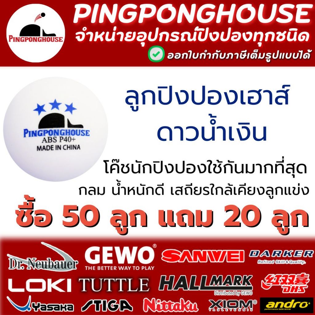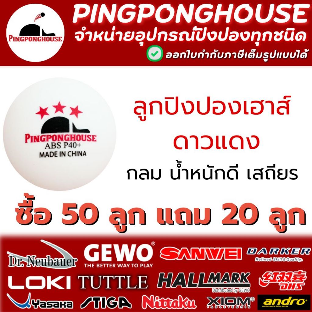 <ซื้อ 50 แถม 20> ลูกปิงปอง Pingponghouse ลูกปิงปอง 3 ดาว รุ่น ABS PRO 40+ I ร้านปิงปองเฮาส์