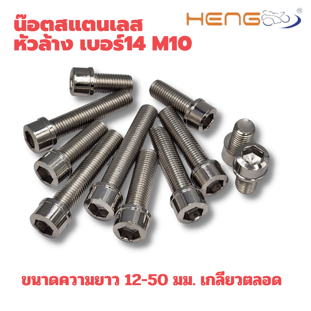 น๊อตสแตนเลส หัวล้าง เกลียวเบอร์ 14 m10 (ราคาต่อตัว) งานเฮงสกรู