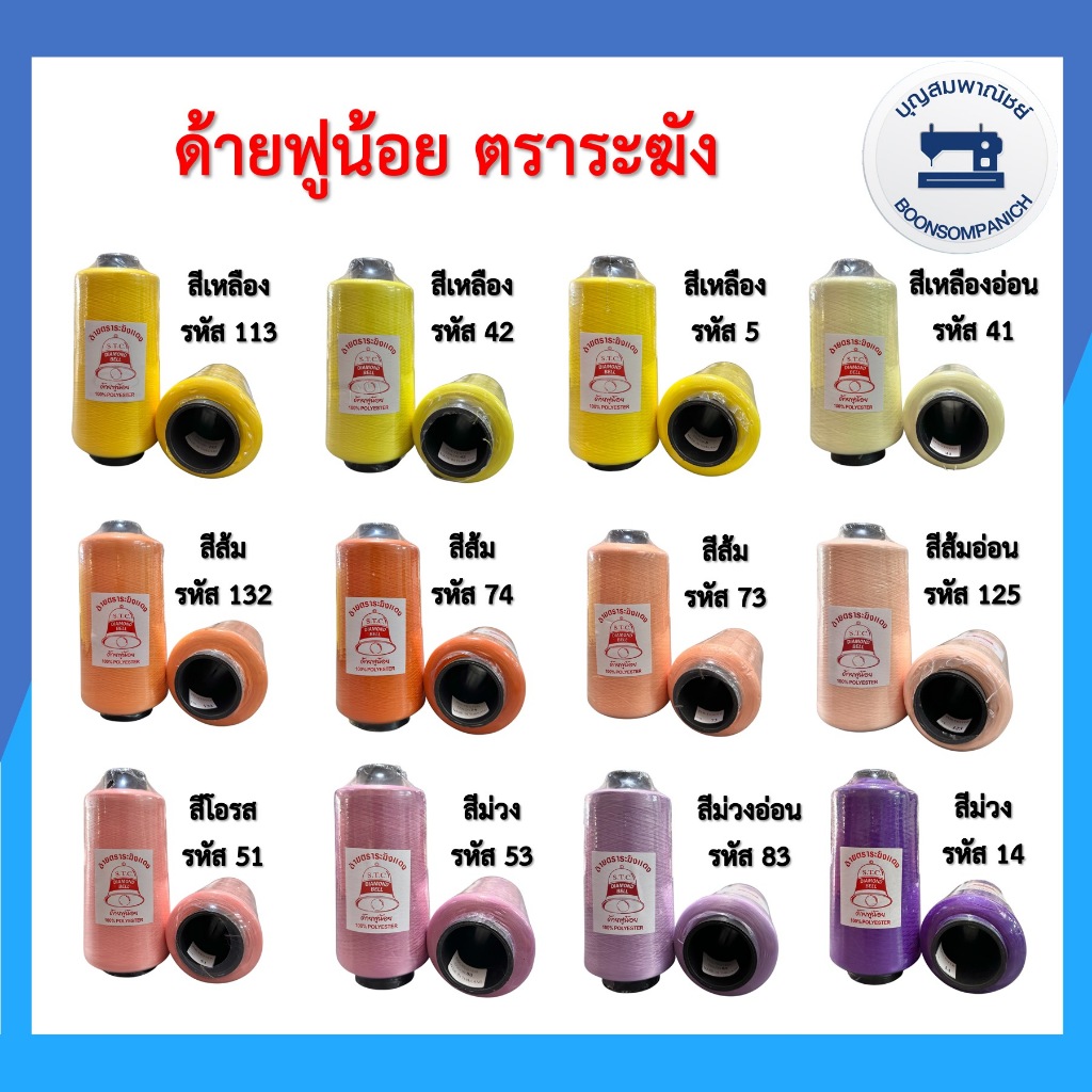 ด้ายฟูน้อยตราระฆัง ด้ายฟู ด้ายโพ้ง ด้ายฟูสี ขนาด250กรัม คุณภาพดี ราคาถูก