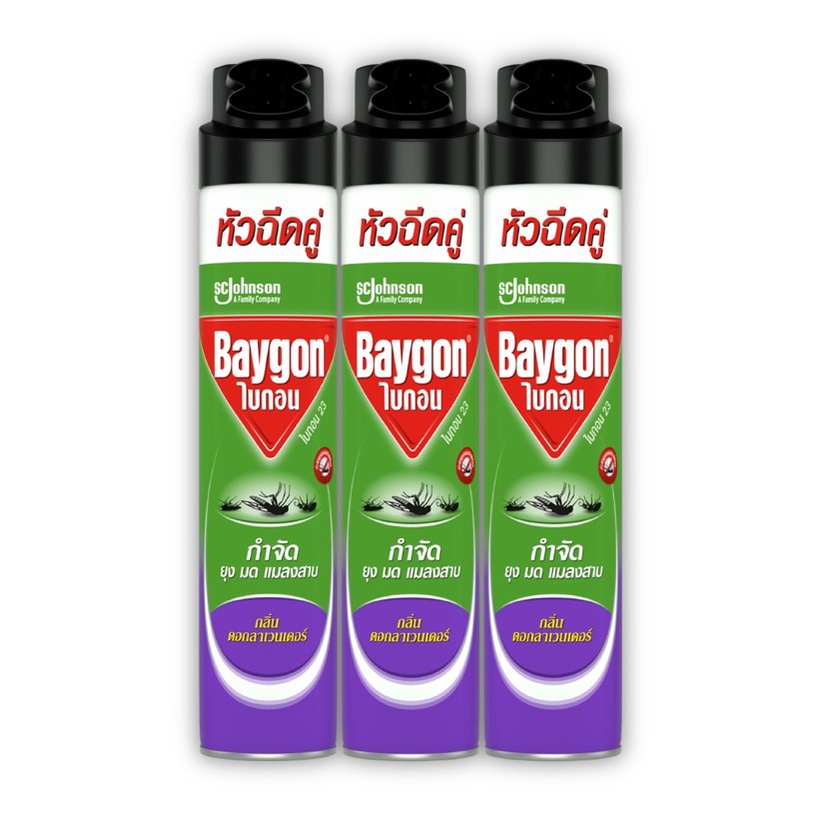 ไบกอนเขียว สเปรย์กำจัดยุง ยาฉีดยุง มด แมลงสาบ กลิ่นลาเวนเดอร์ 600 มล. แพ็ค 3Baygon Multi Insect Killer Lavender Aeresol