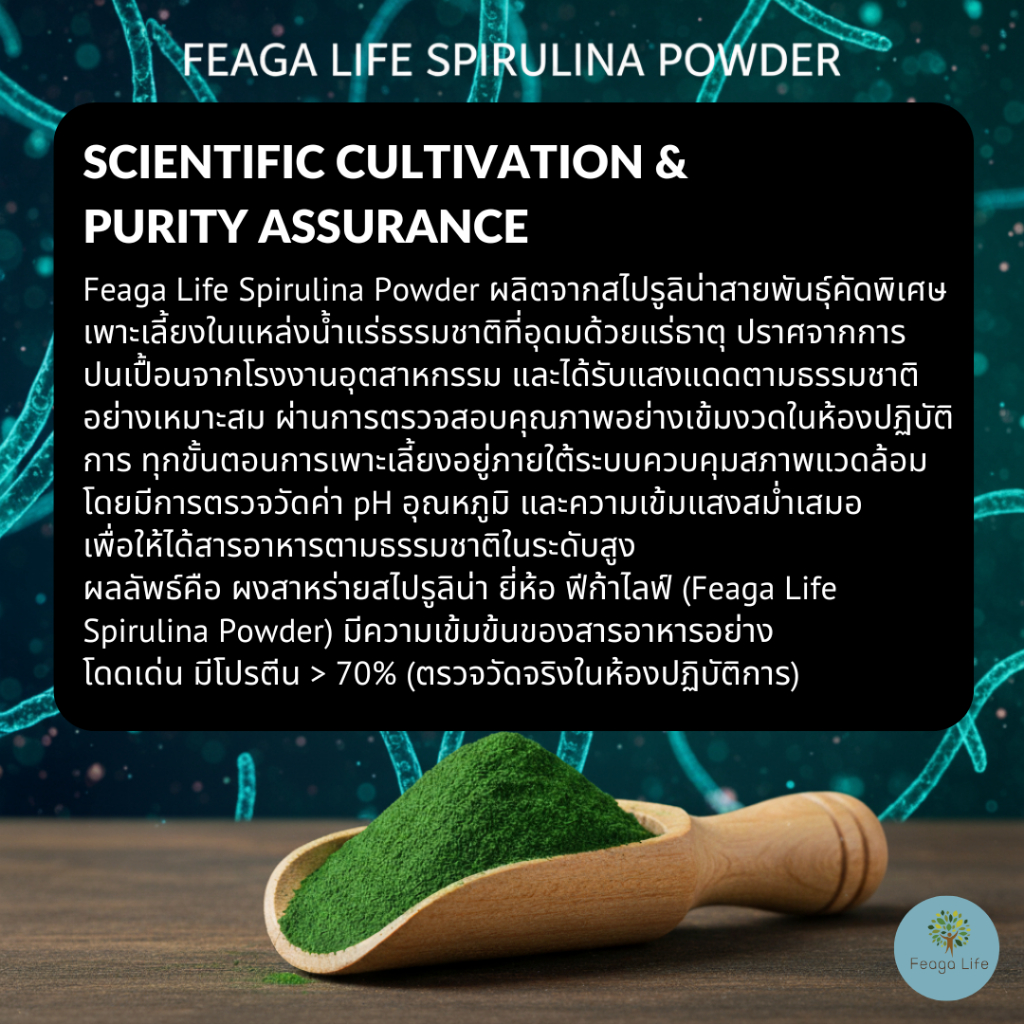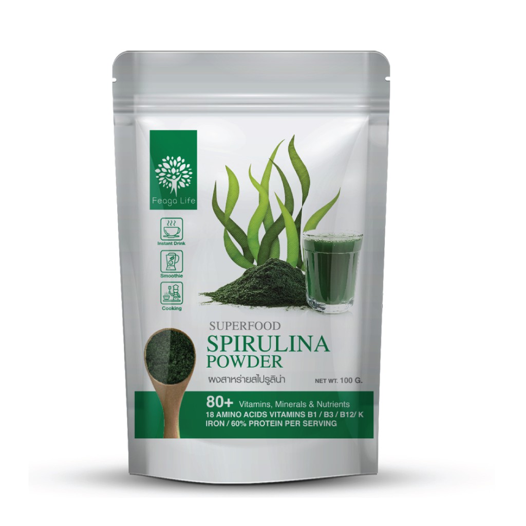 ผงสาหร่ายสไปรูลิน่า สกัด 10:1 B12 ให้สารอาหาร Organic Spirulina Powder ยี่ห้อ Feaga Life 100 กรัม