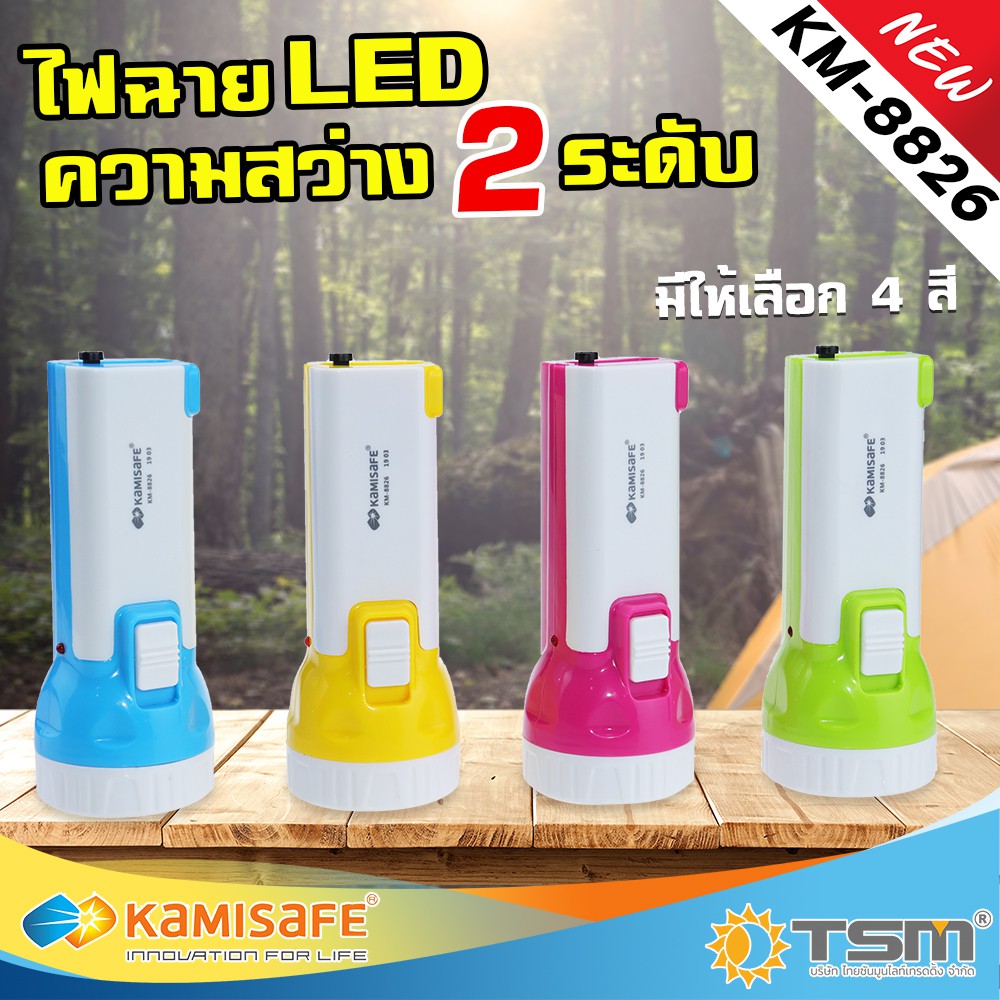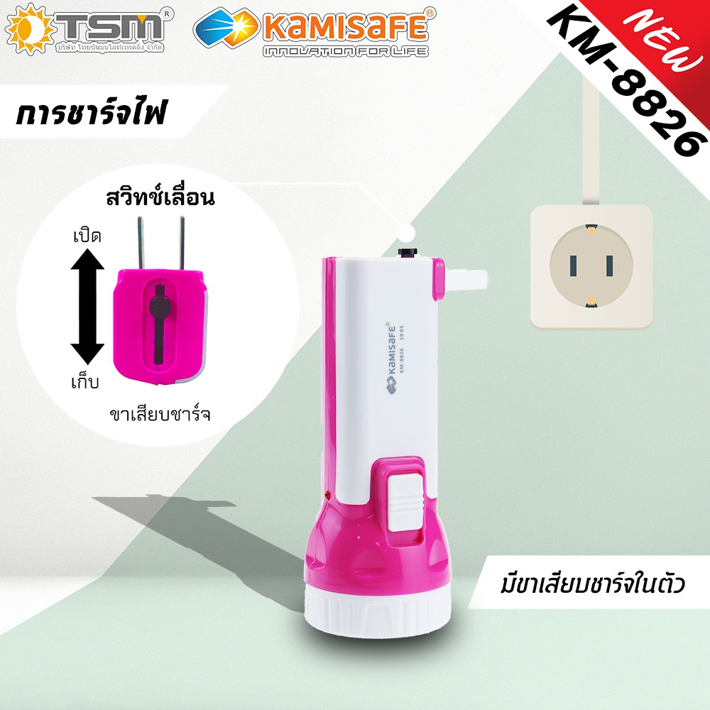 ไฟฉาย LED ไฟฉายขนาดเล็ก ไฟฉายพกพา แบบชาร์จไฟ มีขาเสียบชาร์จในตัว รุ่น KM-8826 ไฟฉายฉุกเฉิน