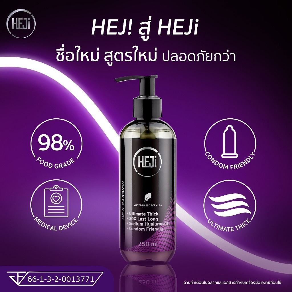 HEJi gel เจลหล่อลื่น " เฮ่ย์จิ "ขนาด250MlสูตรSignature,Passion,Enamored,Virgin ลื่นแห้งช้า**แยกจำหน่ายตามรุ่นที่เลือก**