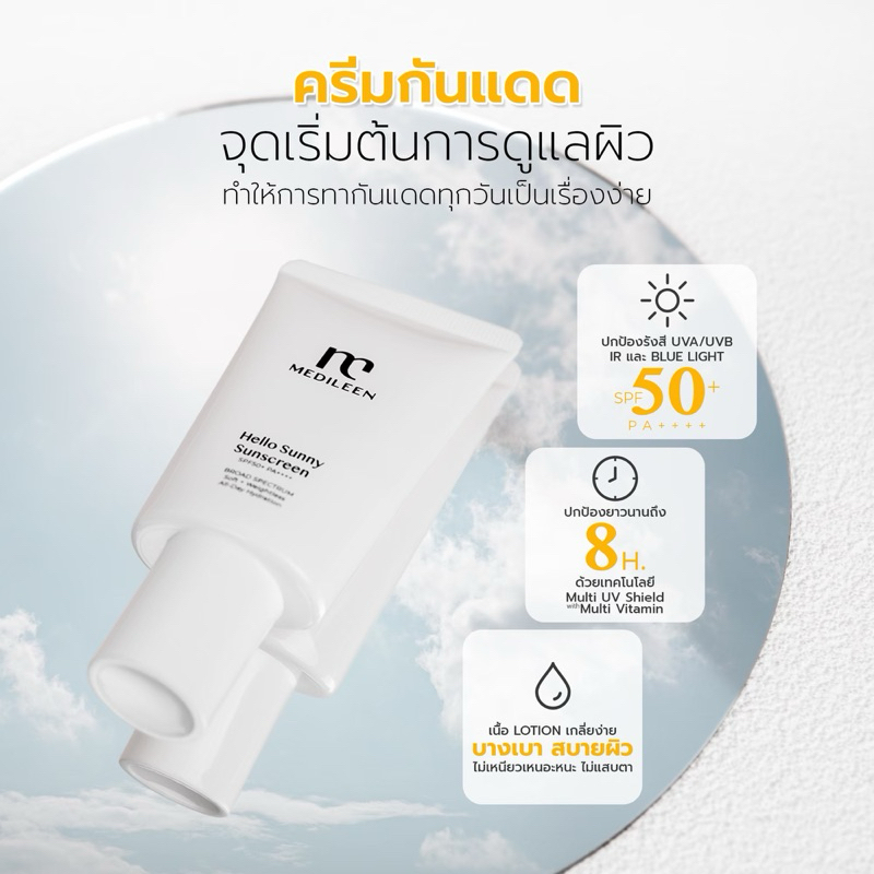ครีมกันแดด(พร้อมส่ง)❤️Medileen Hello Sunny SunScreen SPF50+ PA++++ ครีมกันแดด ป้องกันรังสี