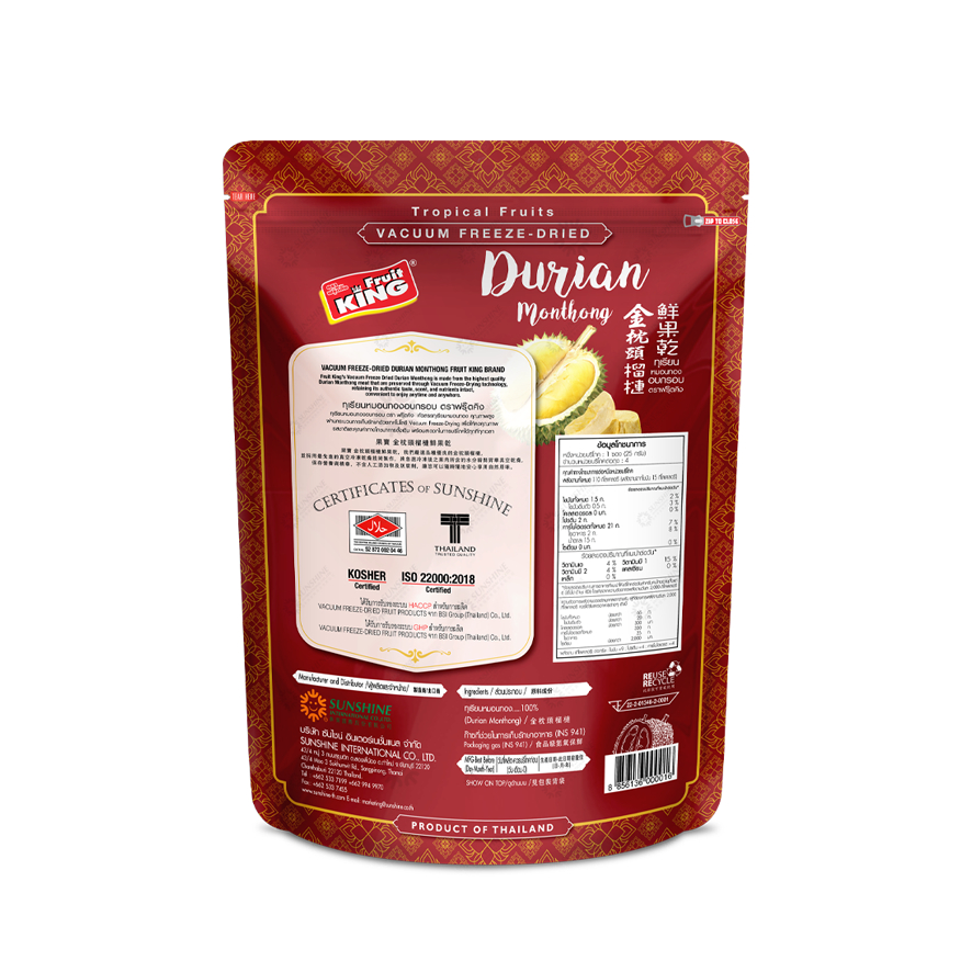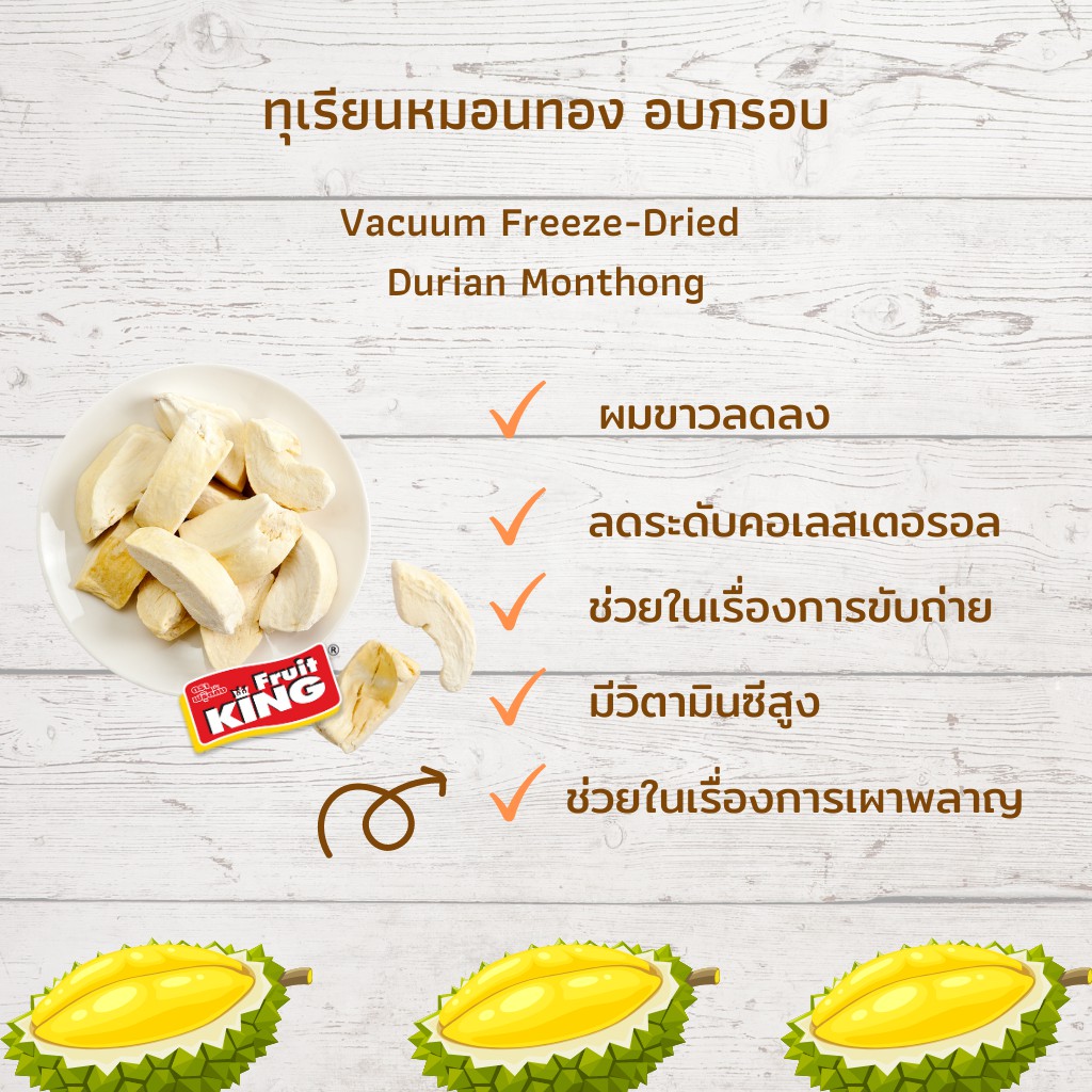 Fruit King Durian Monthong Freeze Dried ทุเรียนหมอนฟรีซดราย(อบกรอบ) 100 กรัม