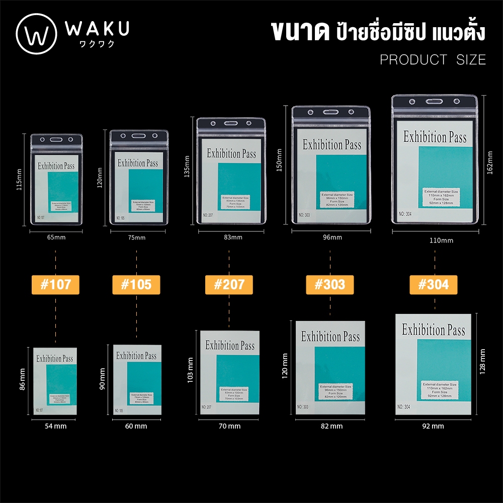 ซองใส่บัตรพนักงาน ป้ายชื่อซองซิปกันน้ำ ป้ายชื่อพนักงาน แนวตั้ง มี 5 ขนาด (แพ็ค 10 ชิ้น) ซองใส่บัตร