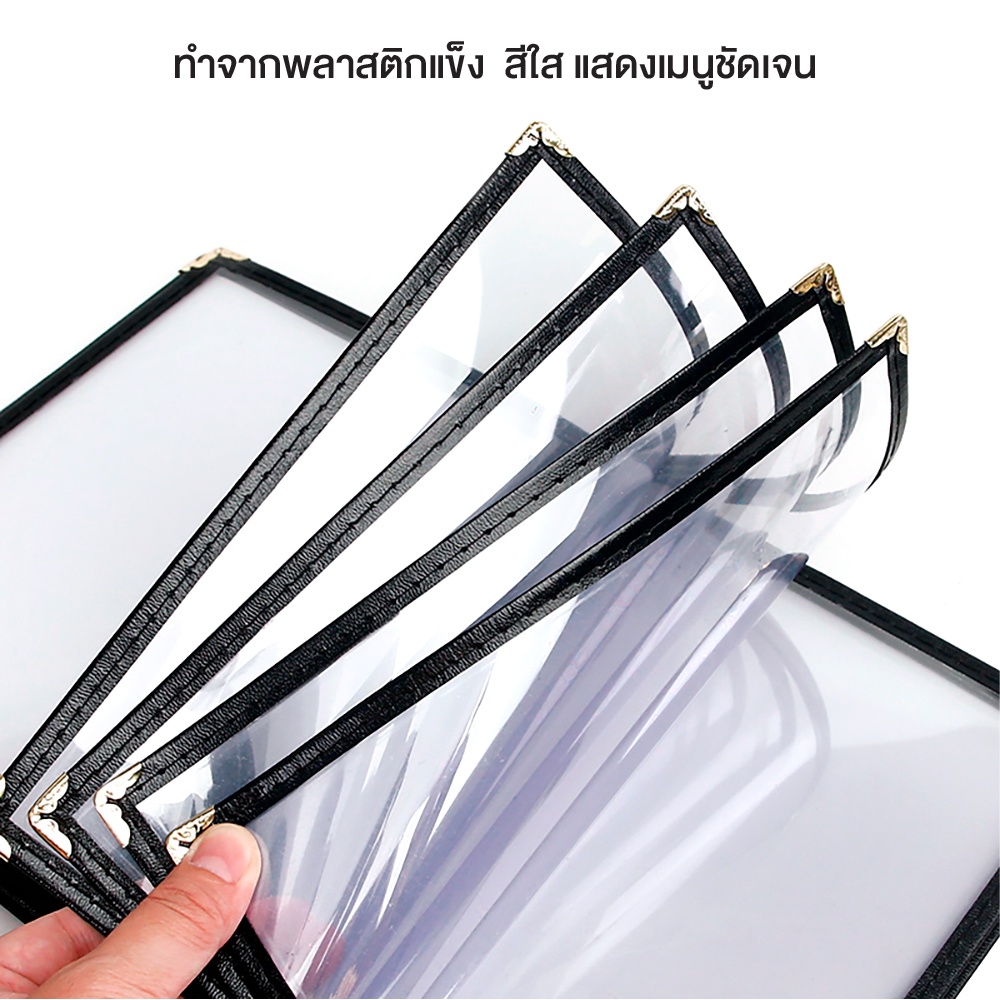 แฟ้มเมนูอาหาร แฟ้มเมนู ปกพลาสติกใส เย็บขอบหนังเทียมอย่างดี รุ่น 8806 , 8810 (1 เล่ม) A5 / A4 WAKU