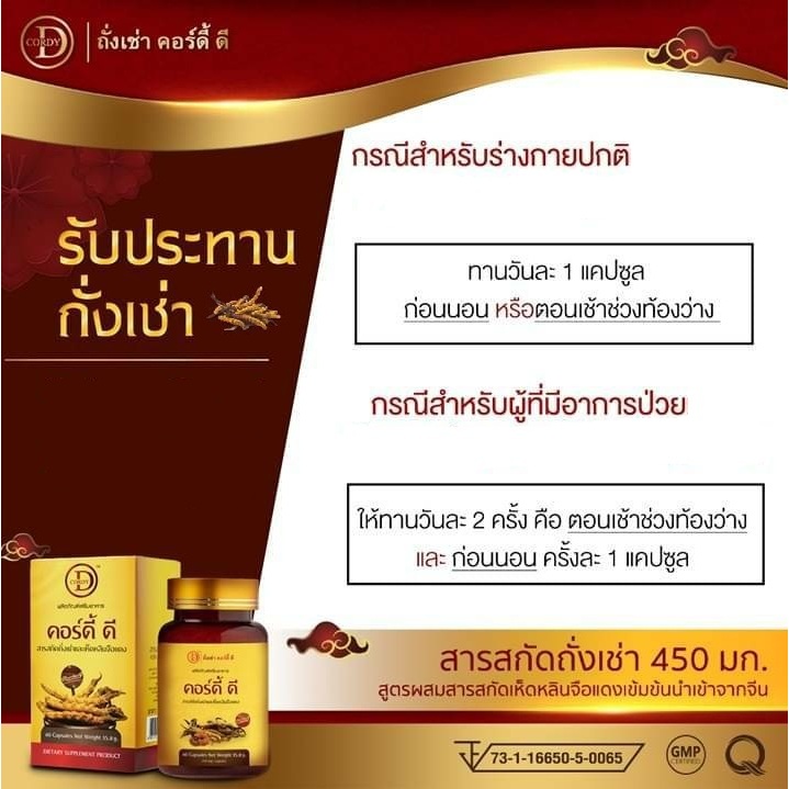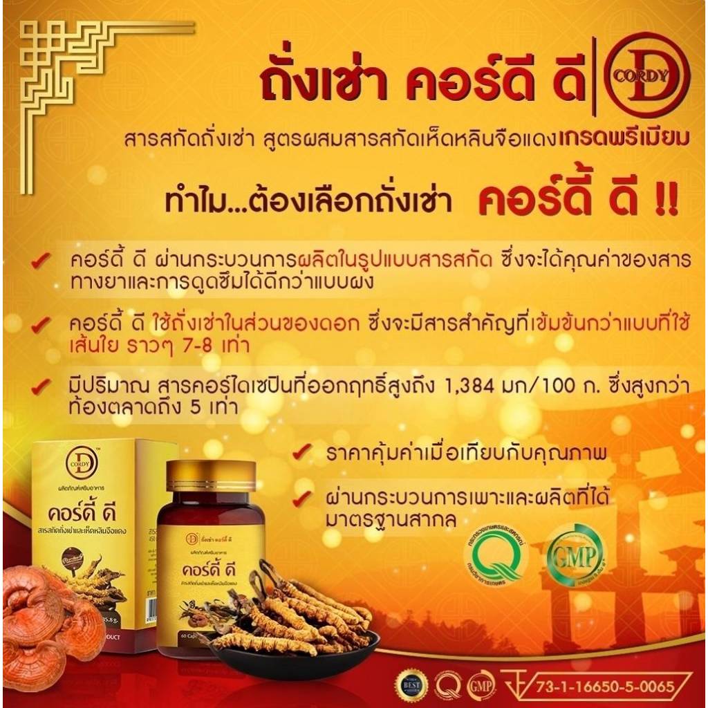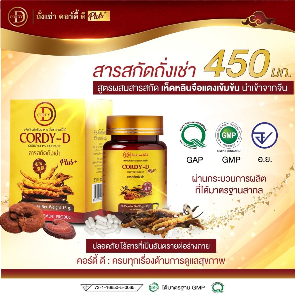 Cordy-D (คอร์ดี้-ดี) สารสกัดถั่งเช่าทิเบต 450 มก.ผสมเห็ดหลินจือแดง 50 มก.