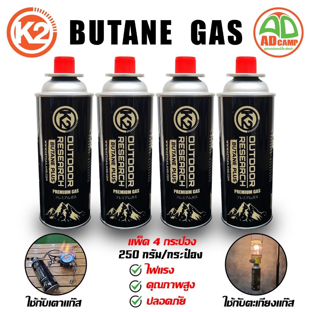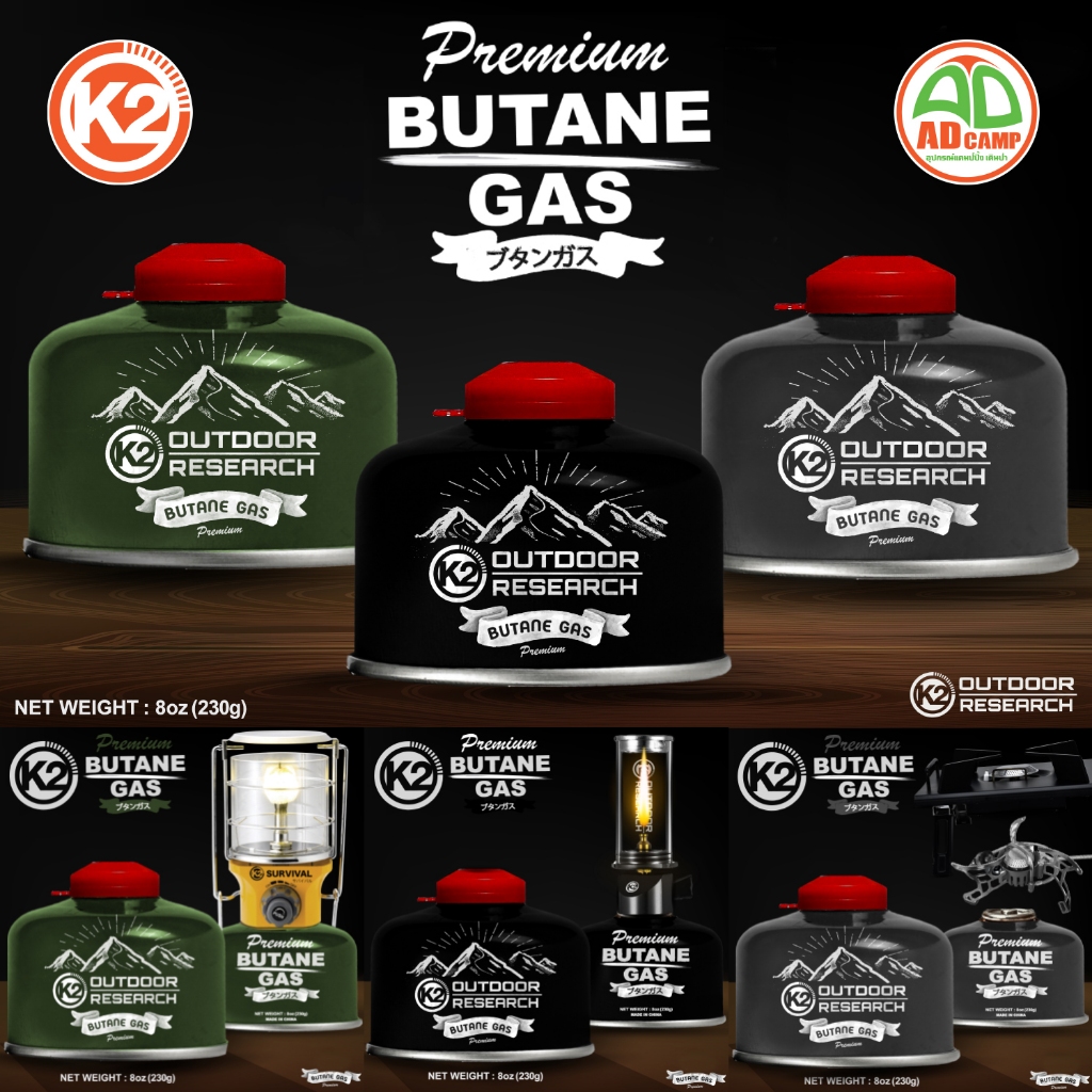 แก๊ส K2 gas แก๊สซาลาเปา (Butane Gas) สำหรับ เตาแก๊ส ตะเกียงแก๊ส ไฟแรง คุณภาพสูง ปลอดภัย