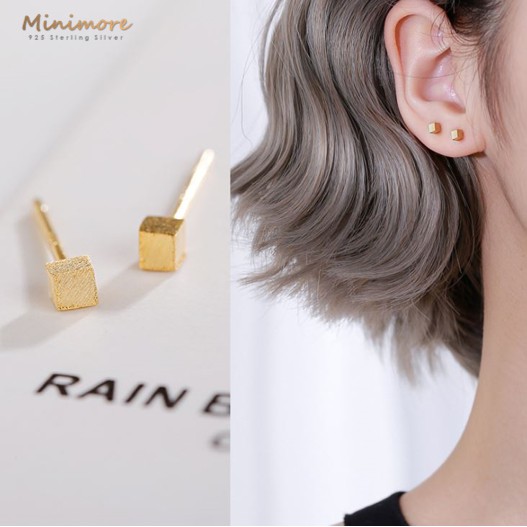 [SE609]🌟ต่างหูเงินแท้ 92.5%🌟หมุดทรง CUBE สุดชิค! สำหรับคนแพ้ง่าย ไม่คันไม่ลอก