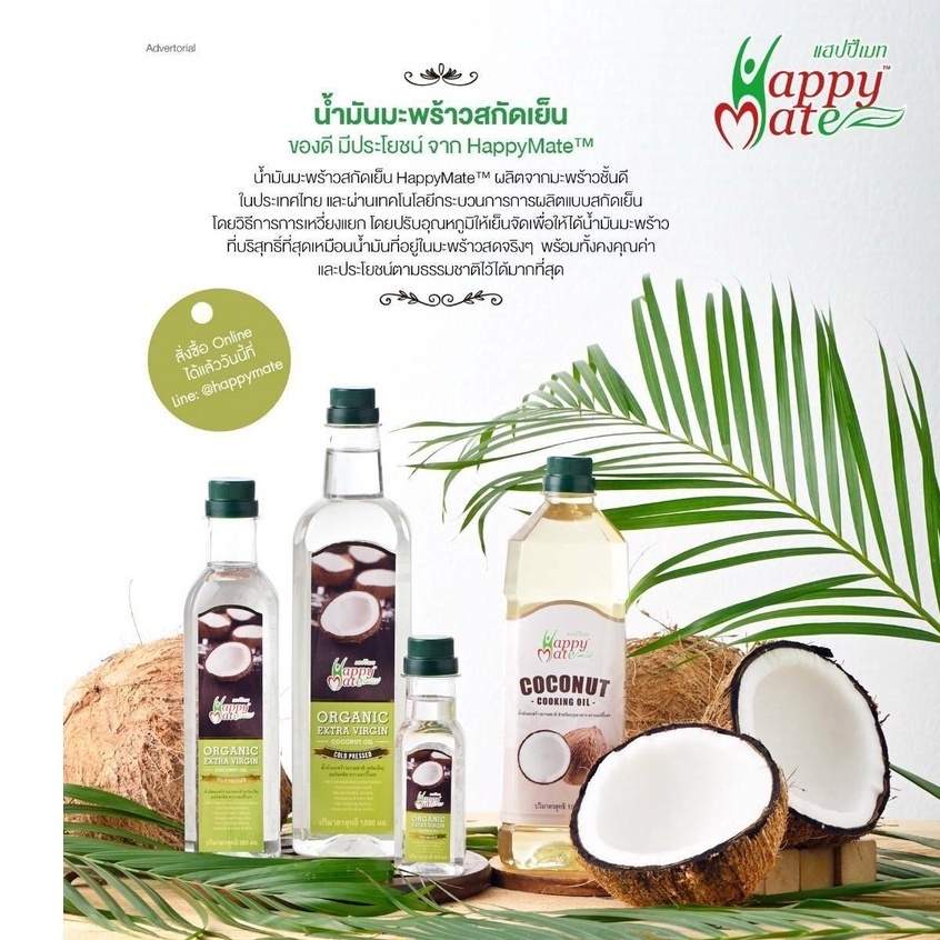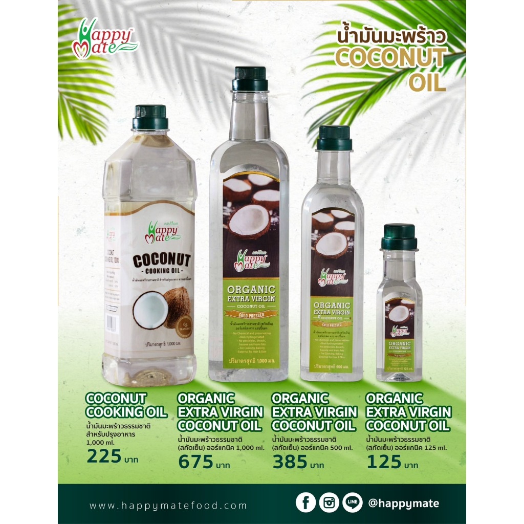 น้ำมันมะพร้าว สำหรับปรุงอาหาร 1,000ml (HappyMate Coconut Cooking Oil)