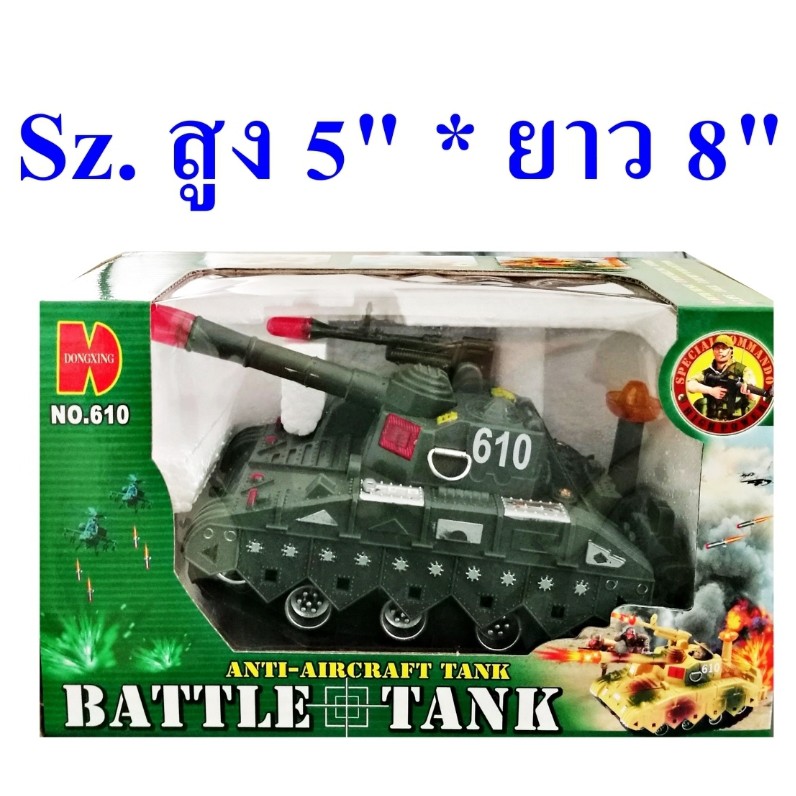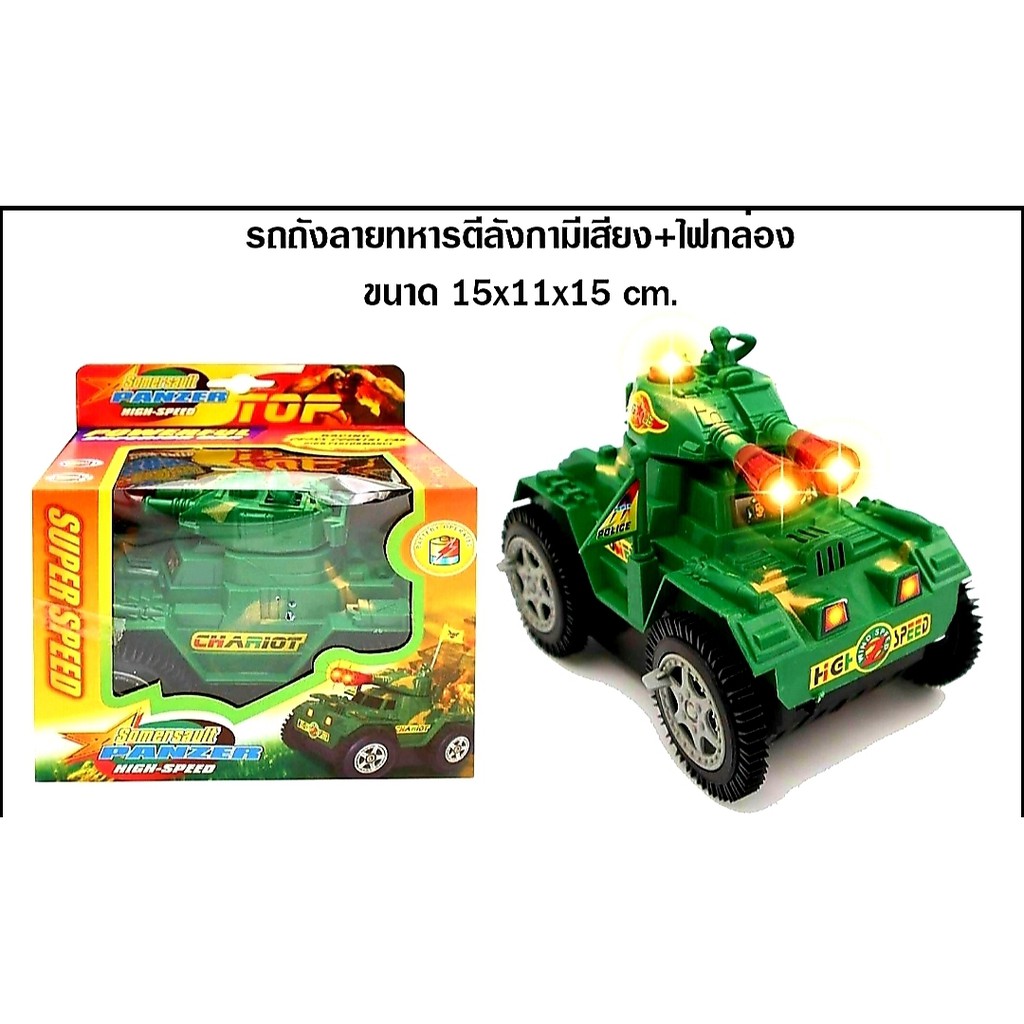 รถถังของเล่นเด็กลายทหาร ใส่ถ่าน วิ่งชนถอย มีเสียงมีไฟ