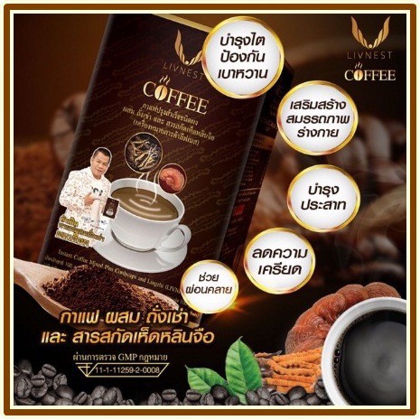 Livnest กาแฟ กาแฟถั่งเช่าผสมสารสกัดเห็ดหลินจือ 1 กล่อง (10ซอง)