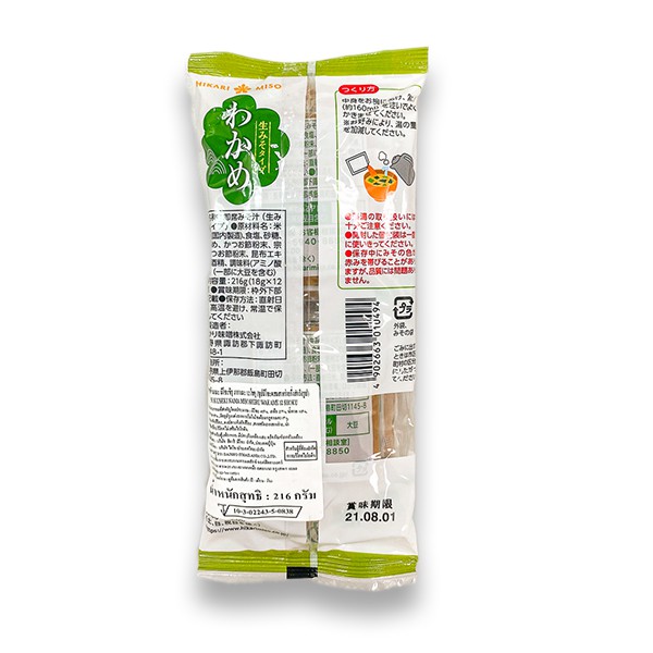 ฮิคาริ ซุปมิโซะผสมสาหร่ายวากาเมะ (สำหรับ 12 ที่) ขนาด 216 กรัม (18 กรัม x 12 ชิ้น) - Hikari Miso Soup Wakame