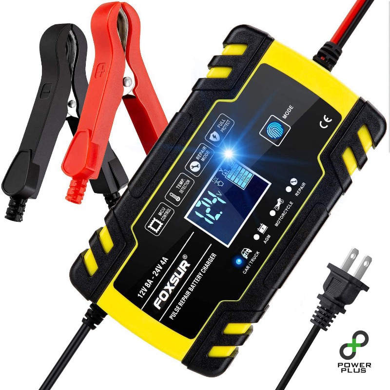 [รับประกัน 1ปี] FOXSUR ของแท้ 100% 122408D เครื่องชาร์จแบตเตอรี่ 12V 24V ที่ชาร์จแบตรถยนต์ ฟื้นฟูแบต
