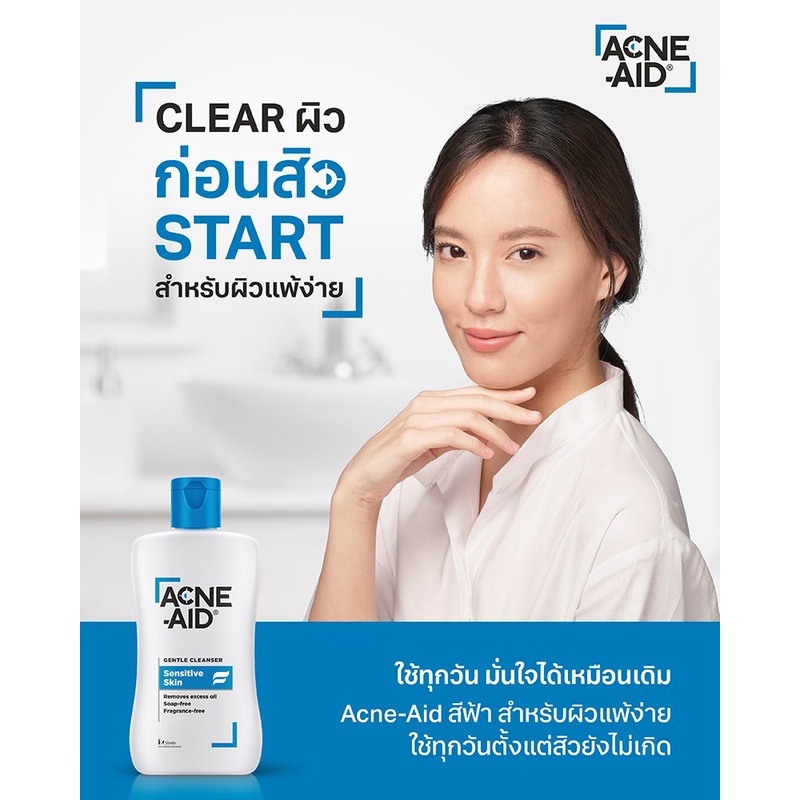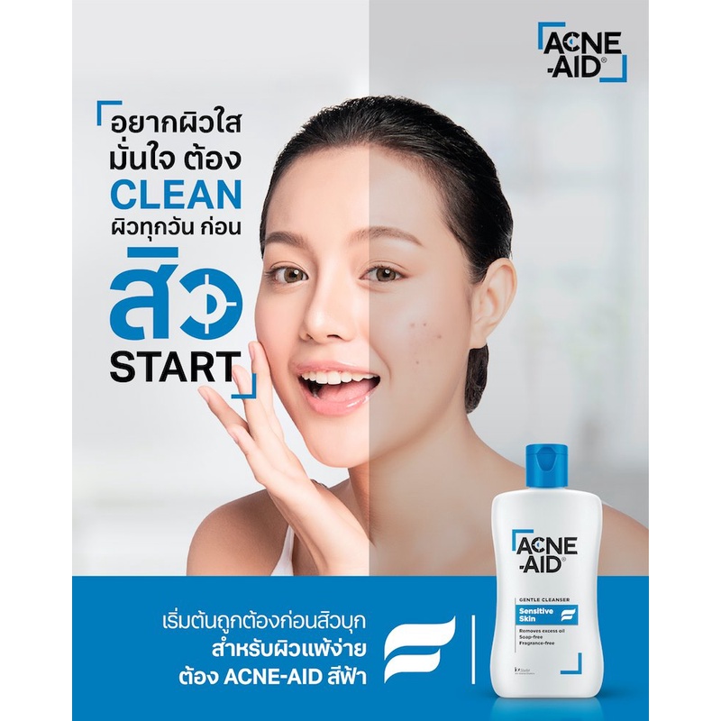 Acne Aid Gentle Cleanser แอคเน่ เอด [100 ml.][ฟ้า] คลีนเซอร์สำหรับปัญหาสิว เหมาะสำหรับผิวแห้ง ถึงผิวผสม