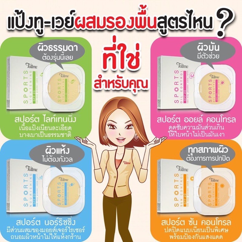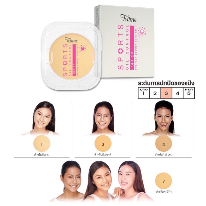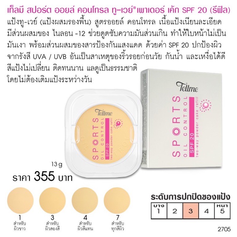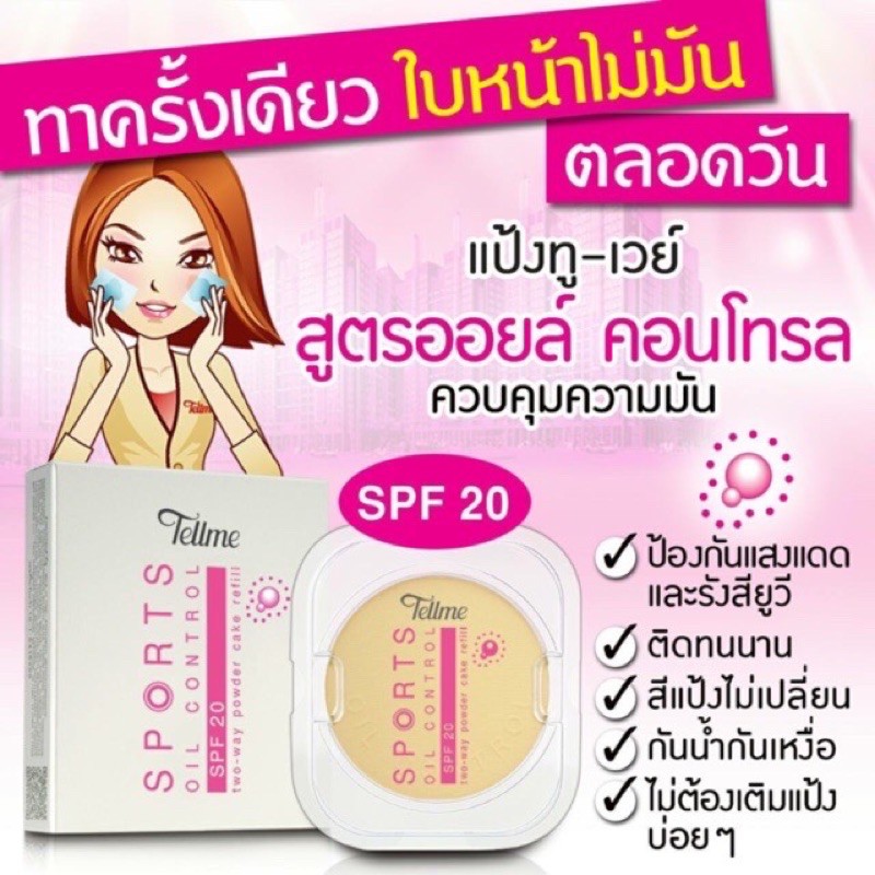 แป้ง+ตลับ แป้งเท็ลมี สปอร์ต ออยล์ คอนโทรล ผสมรองพื้น สำหรับผิวมัน Tellme Sport Oil Control SPF20 Two-Way Powder Cake