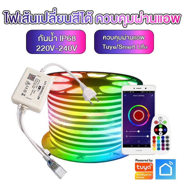 Tuya Smart WIFI RGB Led Strip Light/Neon Flex 220V ไฟเส้น เปลี่ยนสีได้ กันน้ำ สำหรับตกแต่งบ้าน ควบคุมผ่าน ไฟเส้น led
