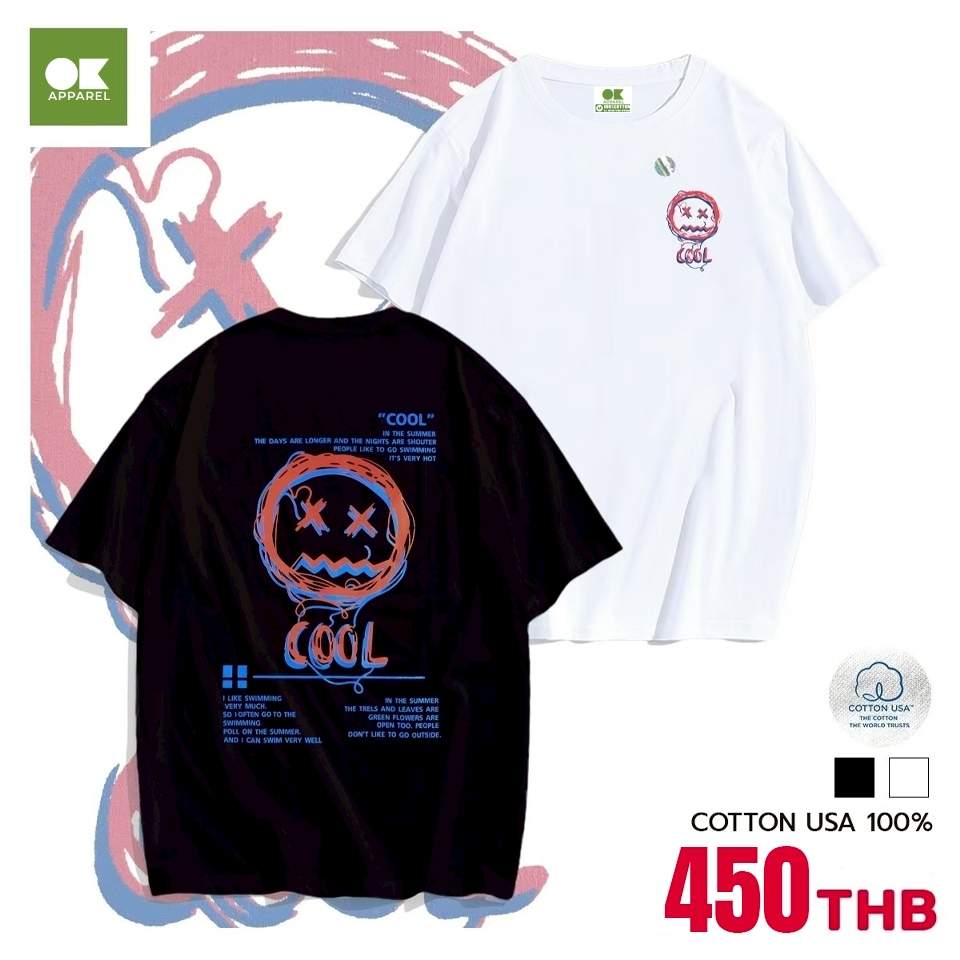 OK Apparel ⚡พร้อมส่ง⚡เสื้อยืดคอกลมสกรีนลาย XO - Oversize ผ้านำเข้าUSA