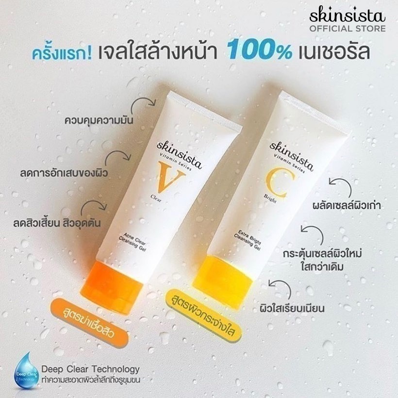 Skinsista เจลล้างหน้า สูตรลดสิว V Clear อ่อนโยนต่อผิวแพ้ง่าย 100 ml