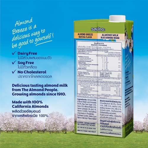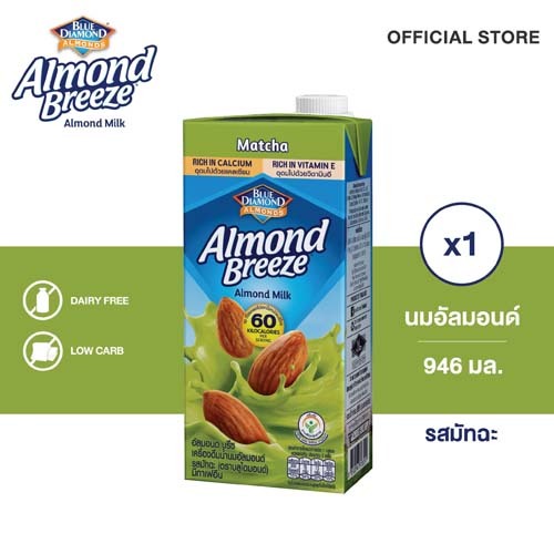 บลูไดมอนด์ อัลมอนด์ บรีซ นมอัลมอนด์ (รสมัทฉะ) 946 มล. Blue Diamond Almond breeze Matcha Flavor Almond Milk 946 ml.