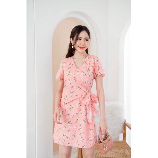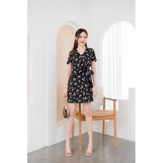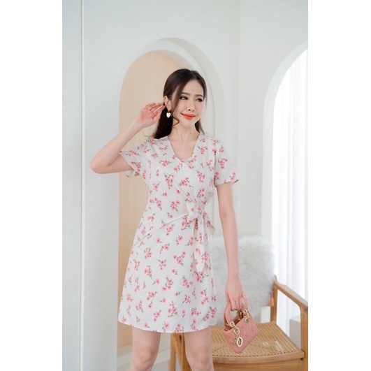 🌿🌙เดรสมีเเขนลายดอก ผูกโบว์ข้าง งานป้ายModish🌵🍀