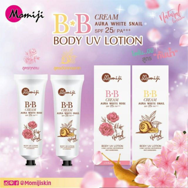 โมมิจิบีบีครีมออร่าไวท์ โรสโลชั่น/สเนลโลชั่น