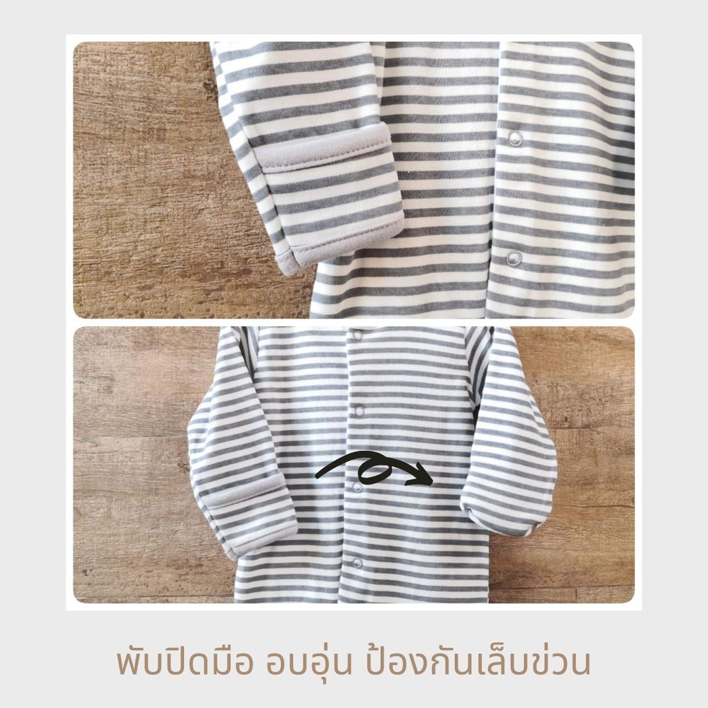 ชุดหมีมีถุงมือในตัว คลุมเท้า บอดี้สูทเด็กแรกเกิดถึง 3 เดือน ผ้า cotton interlock แท้ 100% - Oh Whale Baby