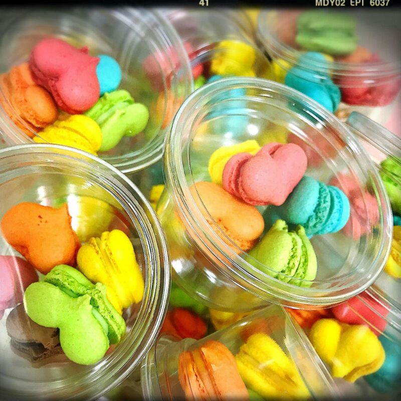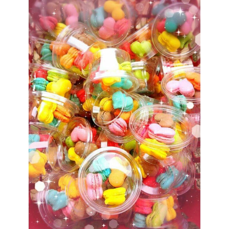 มาการองจิ๋ว รูปหัวใจ "คละรสชาติ" แบบกระปุก 5 ชิ้น (สั่งขั้นต่ำ 2 กระปุก)