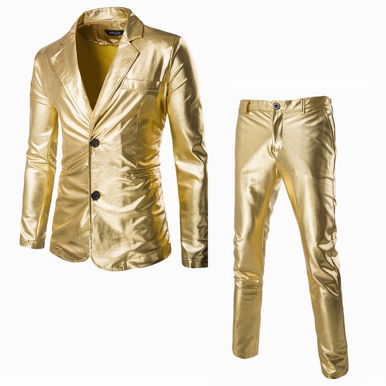 COCO-MAN ชุดสูทสีทอง/สีเงิน/สีดำ เมทาลิก สำหรับผู้ชาย มีเสื้อ กางเกง ขายแยก ชุดไปงานเลี้ยงแฟนซี ปาร์ตี้