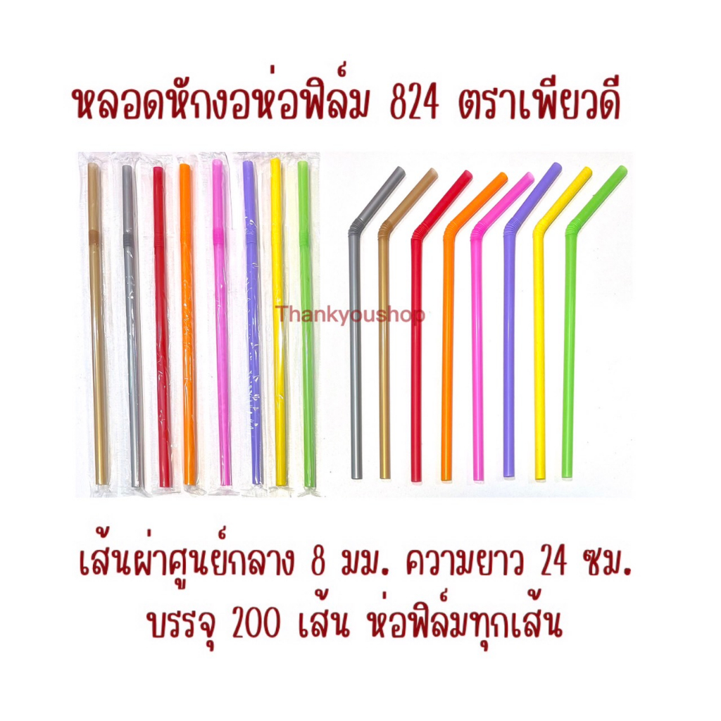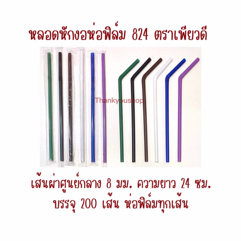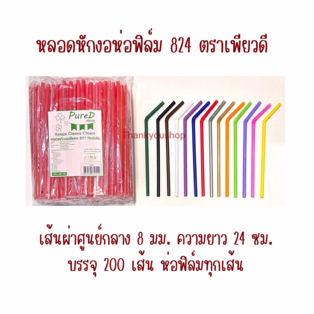 824 หลอดหักงอห่อฟิล์ม ตราเพียวดี PureD หลอดดูดน้ำ