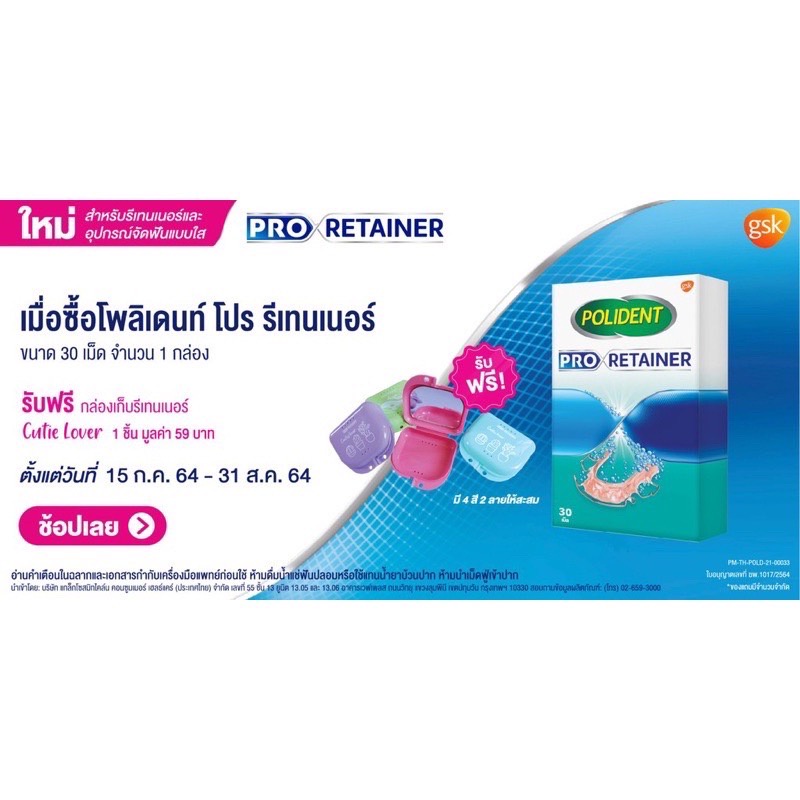ล็อตใหม่!! Polident เม็ดฟู่ โพลิเดนท์ ทำความสะอาดฟันปลอม รีเทนเนอร์ และเฝือกสบฟัน / POLIDENT PRO RETAINER (1 กล่อง)