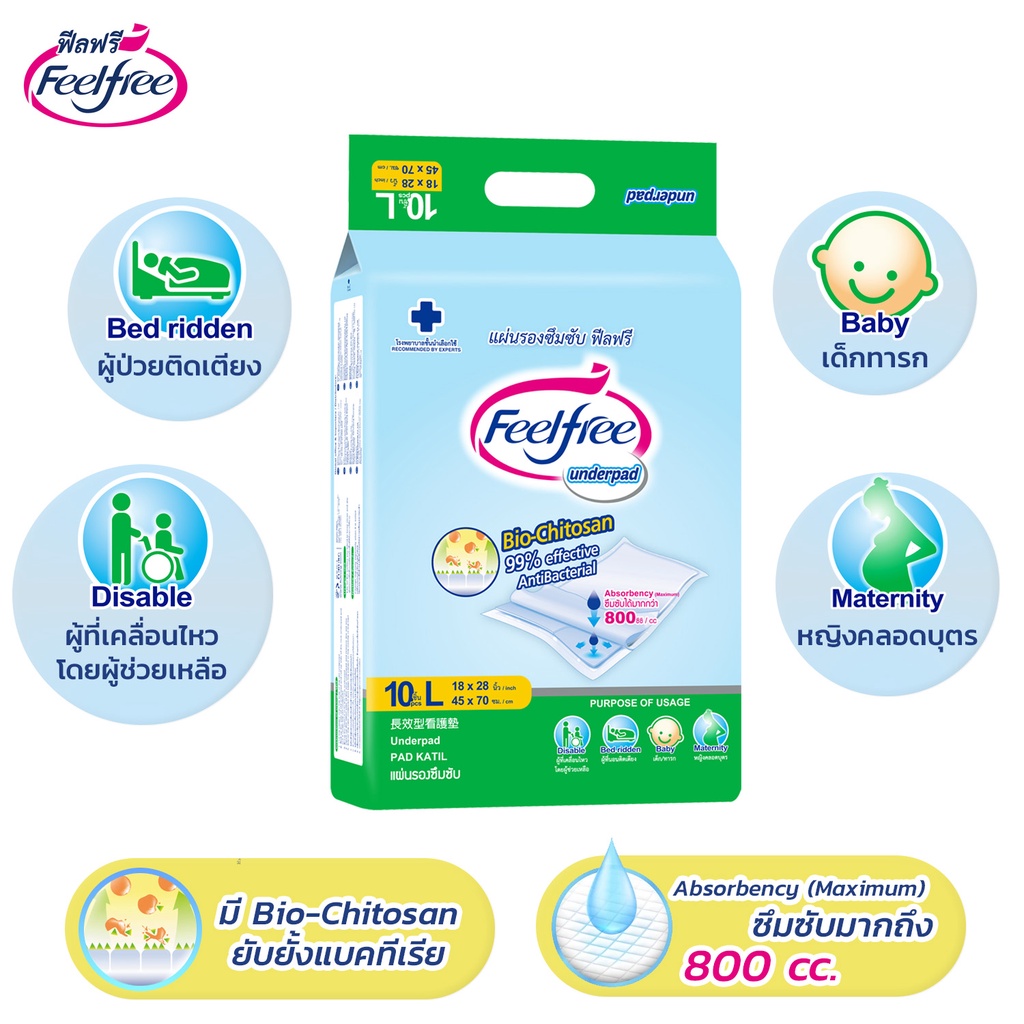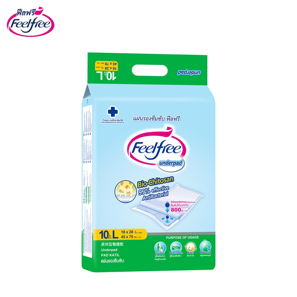 [ขายยกลัง] Feelfree แผ่นรองซับ ไซส์ L10ชิ้น*20 แพ็ค 200 ชิ้น ซึมซับมาก 800CC แผ่นรองฉี่ #A9031322