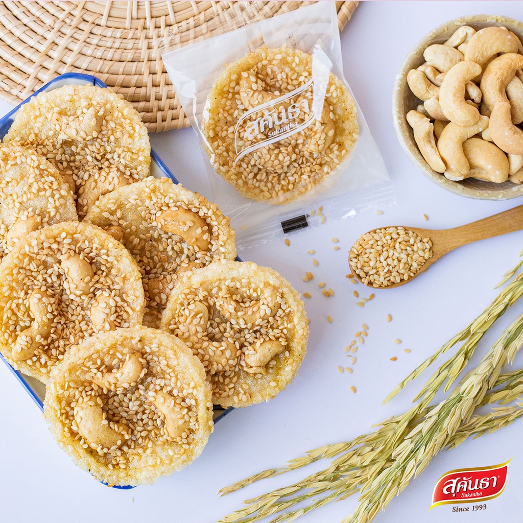 ขนมไทย สุคันธา ข้าวตังหน้าเมล็ดมะม่วงหิมพานต์ แบบกล่อง (80 กรัม) Sukantha Rice Crisps with Cashew Nut