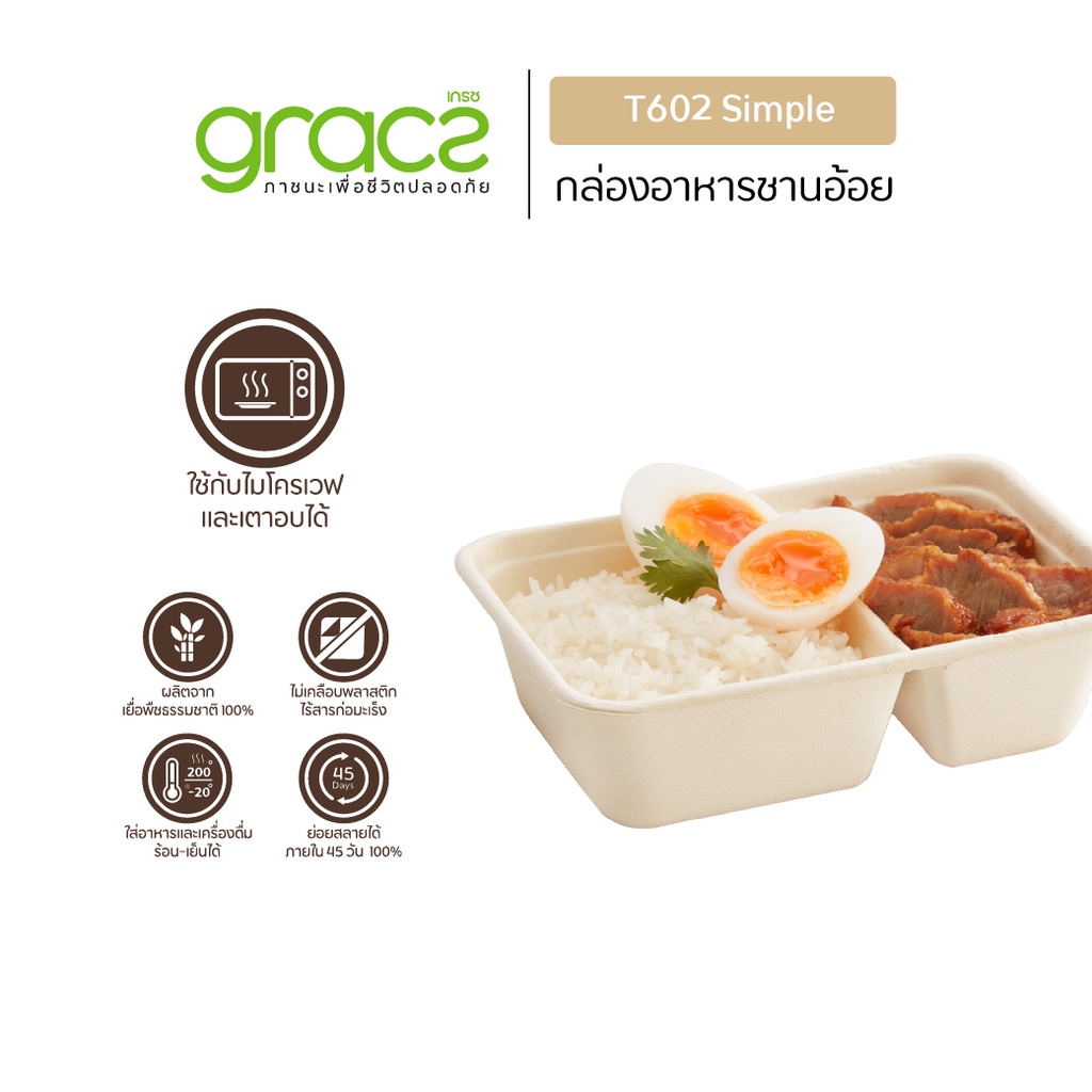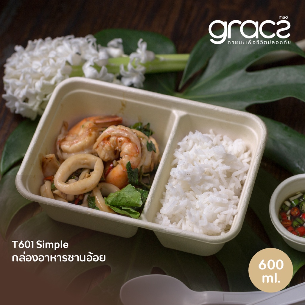 GRACZ กล่องอาหาร 2 ช่อง พร้อมฝา 600 ml. รุ่น T621 (แพ็ก 25 ชุด) (เกรซ ซิมเปิล) กล่องใส่อาหาร ชานอ้อย