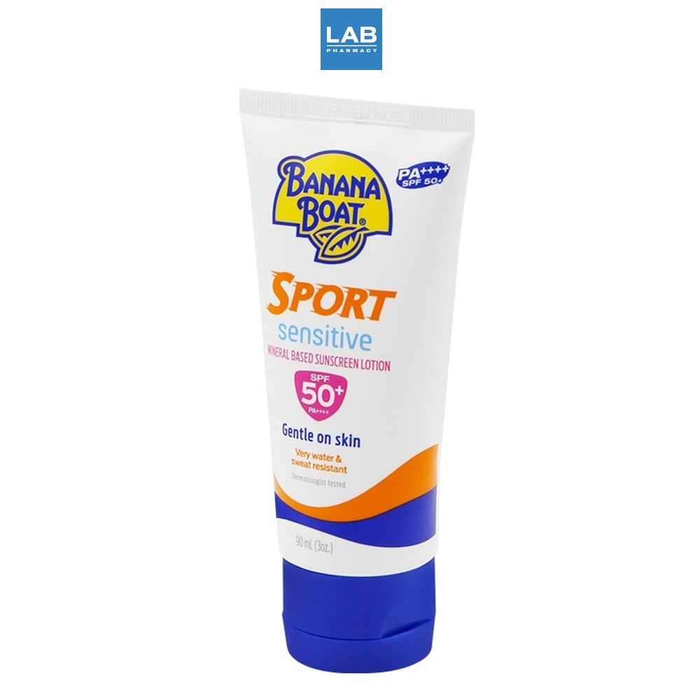 Banana Boat Sport Sensitive Mineral Based Sunscreen Lotion SPF50+ PA++++ 90 ml. - บานาน่า โบ๊ท สปอร์ต เซ็นซิทีฟ มิเนอรัล เบส ซันสกรีน โลชั่น เอสพีเอฟ50+พีเอ++++ 90 มล.