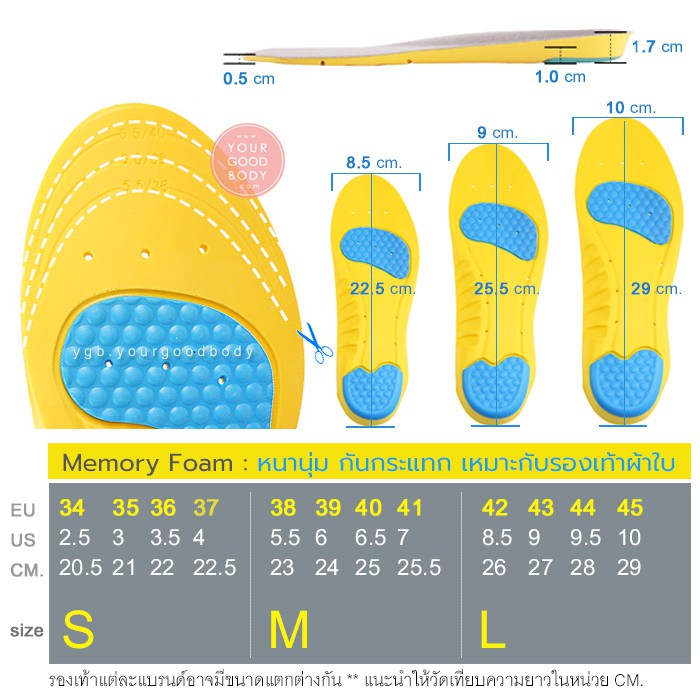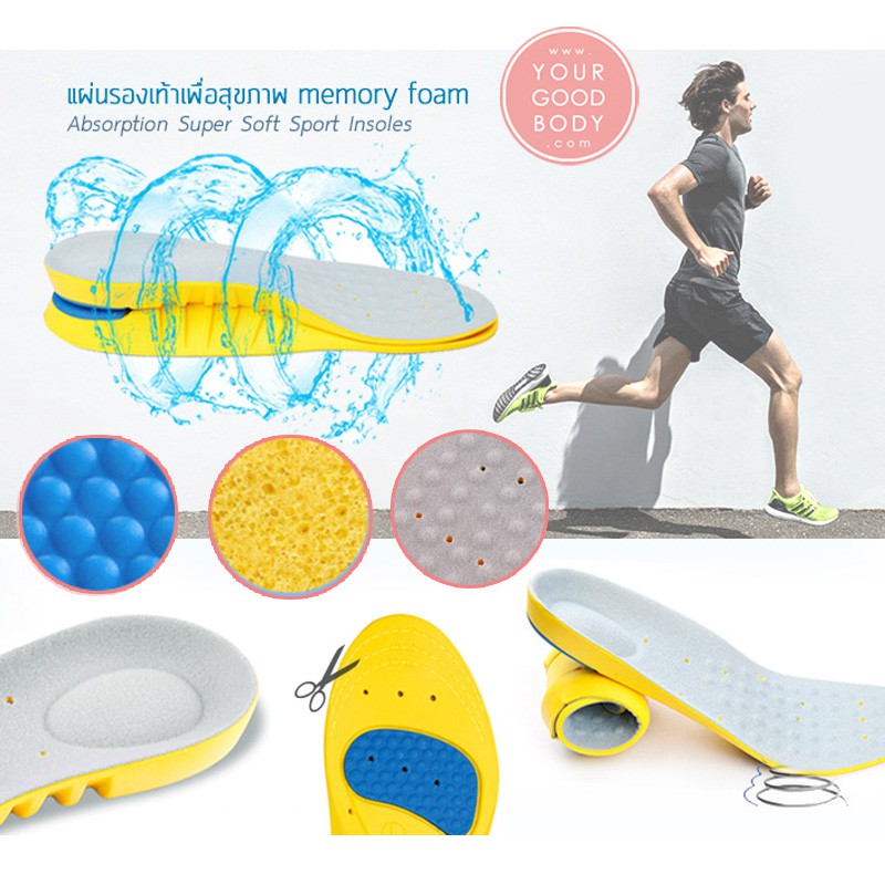 YGB แผ่นรองเท้าเพื่อสุขภาพ แผ่นรองเท้า เมมโมรี่โฟม Active PRO แผ่นพื้นรองเท้า นุ่มสบาย