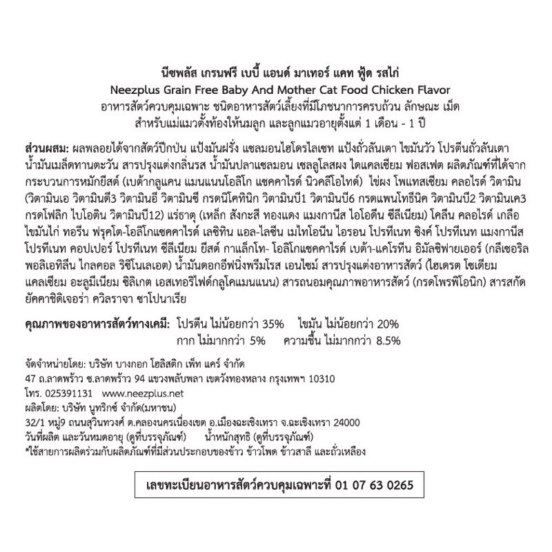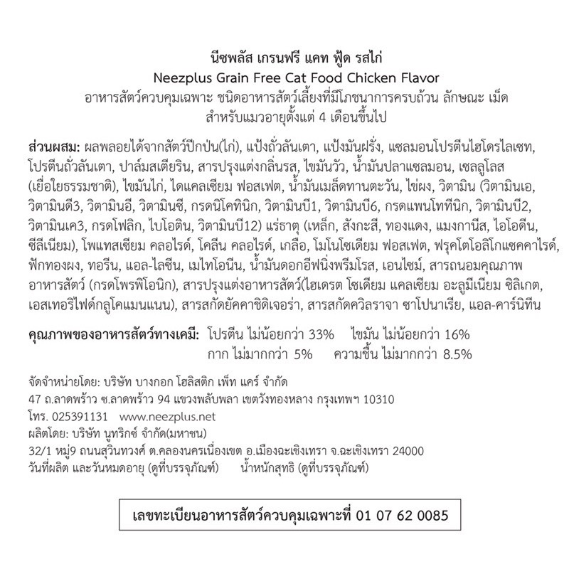 Neez Plus อาหารแมว เกรดพรีเมียม สูตร Holistic และ สูตร Grain Free ขนาด 10 kg