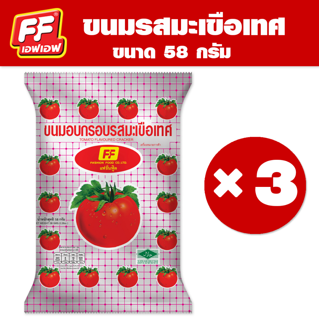 FF เอฟเอฟ ขนมอบกรอบ รสมะเขือเทศ [1 แพ็ค 3 ซอง ]🍅
