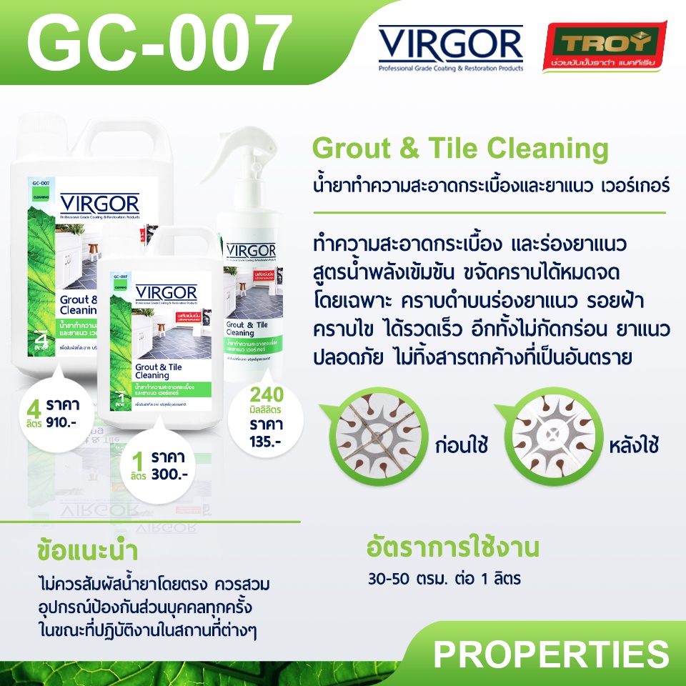 GC-007 น้ำยาทำความสะอาดกระเบื้องและยาแนว เวอร์เกอร์ ขนาด 4 ลิตร