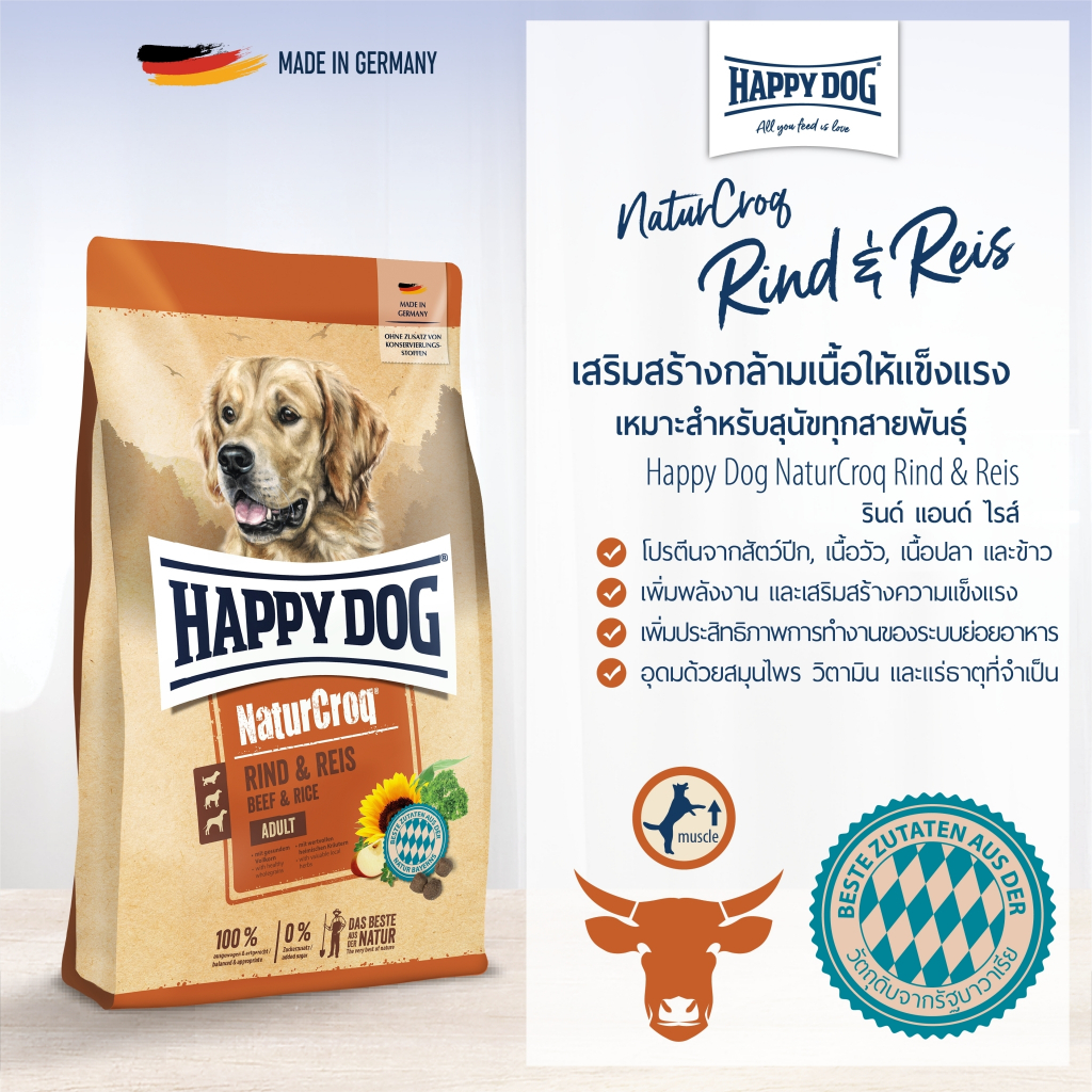 HAPPY DOG NaturCroq Rind & Reis อาหารสุนัขโต สูตรเนื้อวัว เนื้อสัตว์ปีก เนื้อปลา และข้าวคุณภาพดี 1 Kg
