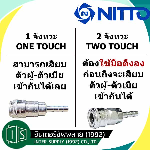 NITTO ข้อต่อสวมเร็ว เกลียวนอก 20PM 30PM 40PM 20SM 30SM 40SM | 1/4" 3/8" 1/2" คอปเปอร์ TWO-TOUCH 2 จังหวะ Nitto Kohki