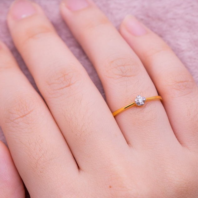 Happy jewelry แหวนเม็ดเดี่ยว เตยหัวใจเสริมเพชร แหวนเพชร แหวนทอง เพชรแท้ ทองแท้ 37.5% ME585